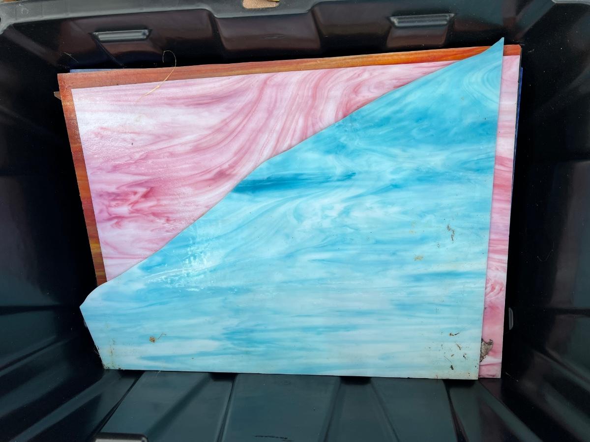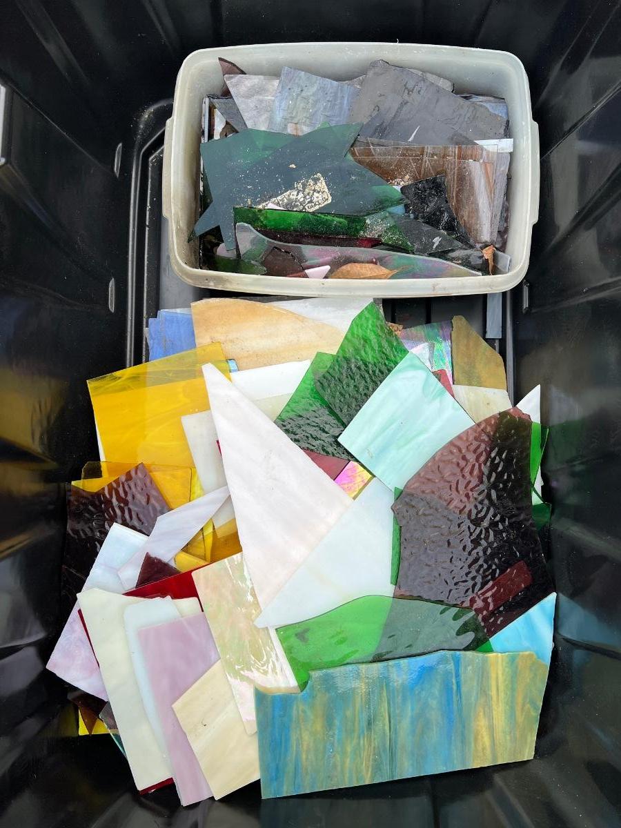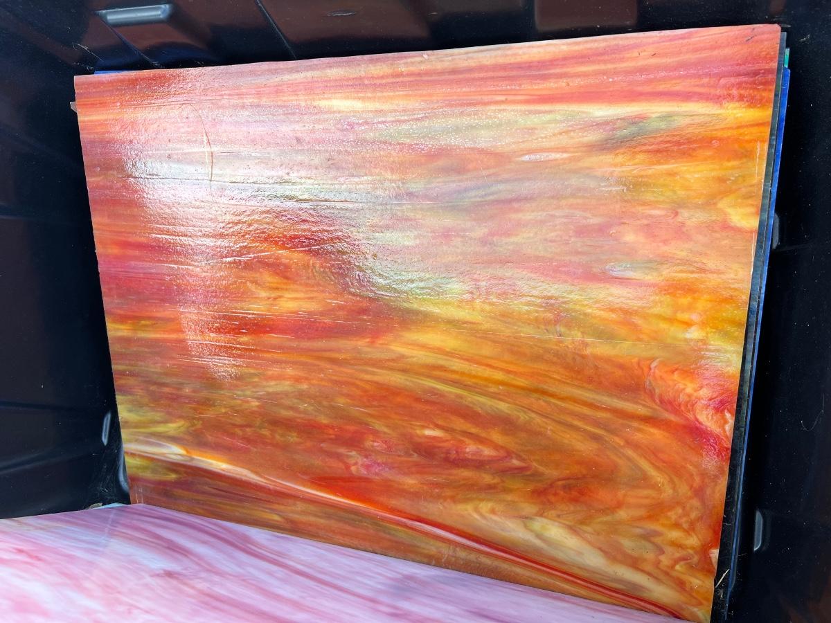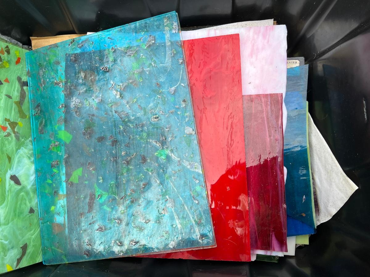 Stained glass for crafting or stained glass projects. Includes full sheets and pieces.