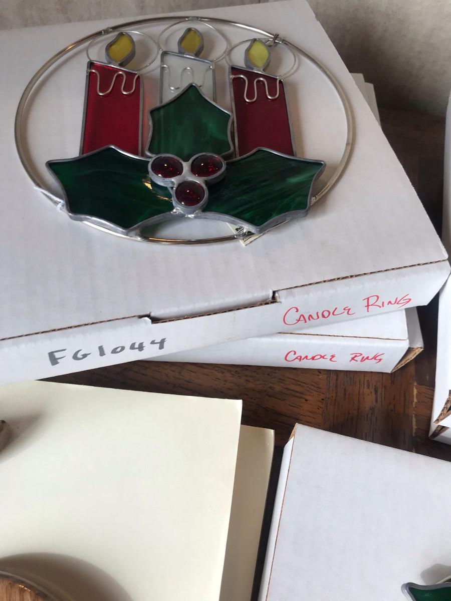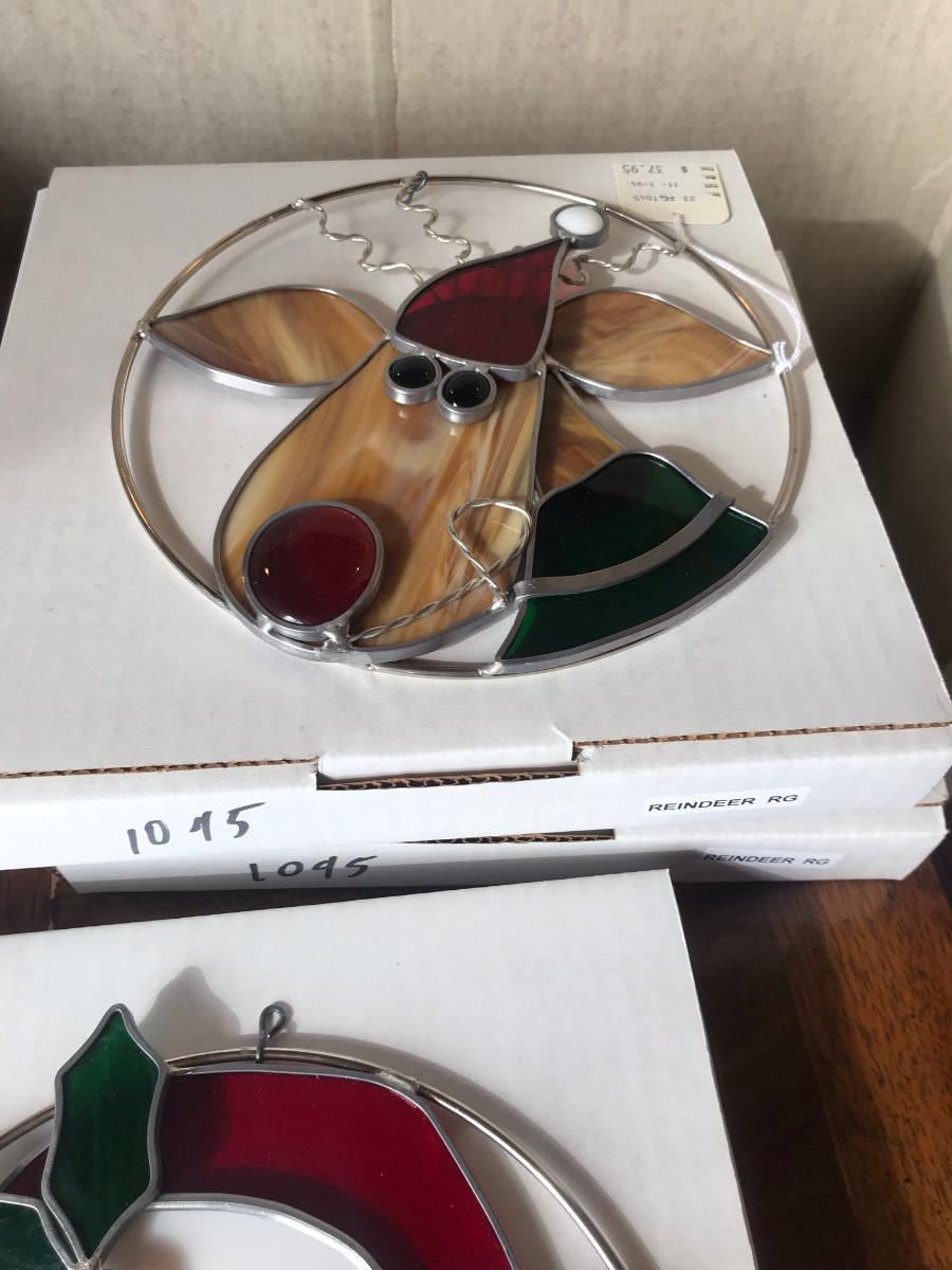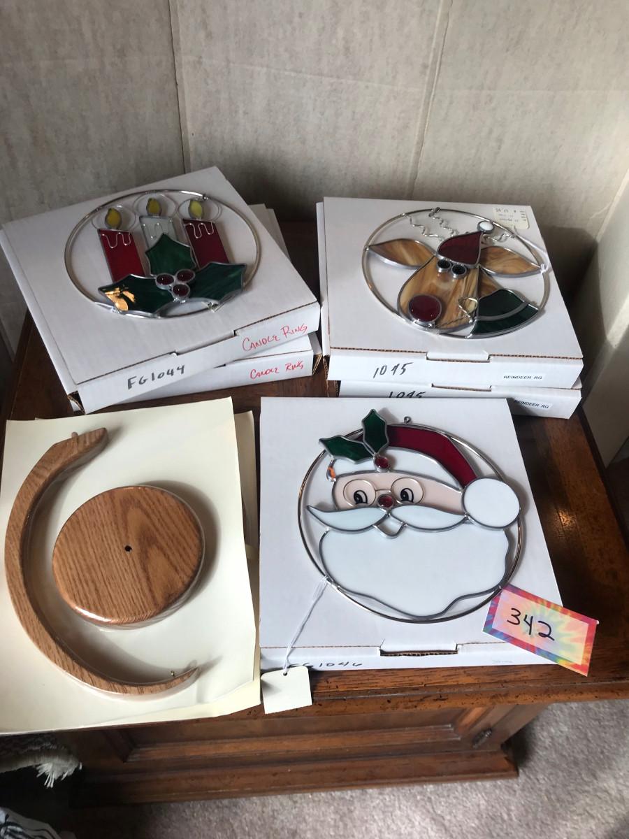 You get 2 candles, 2 Reindeer, & 1 Santa. These are about 6" diameter. You also get two oak display stands! The plaques originally sold for $37.95 each in 1994!
