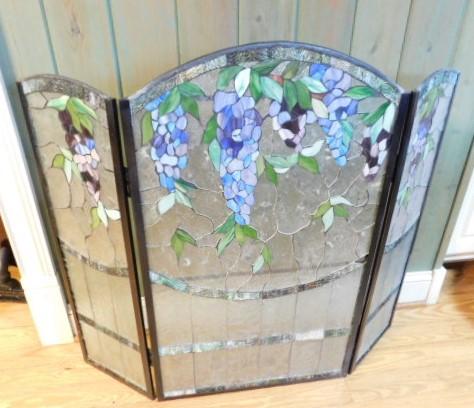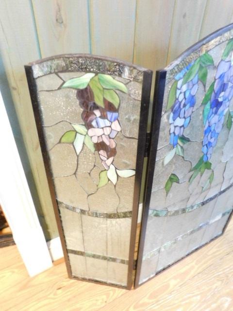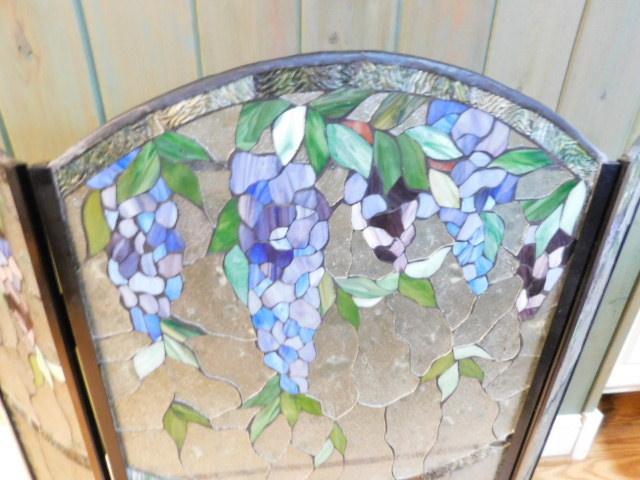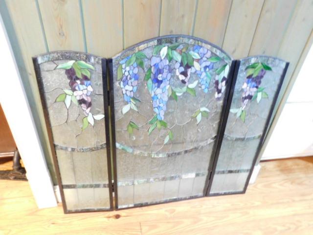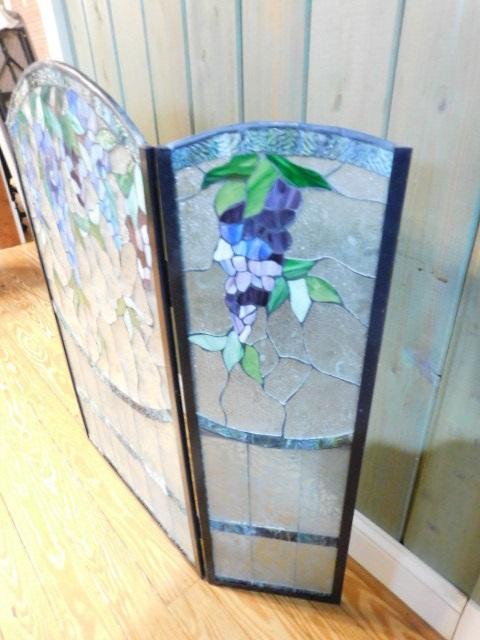 Stained Glass Three Panel Fire Place Screen Solid Front 35"x40"