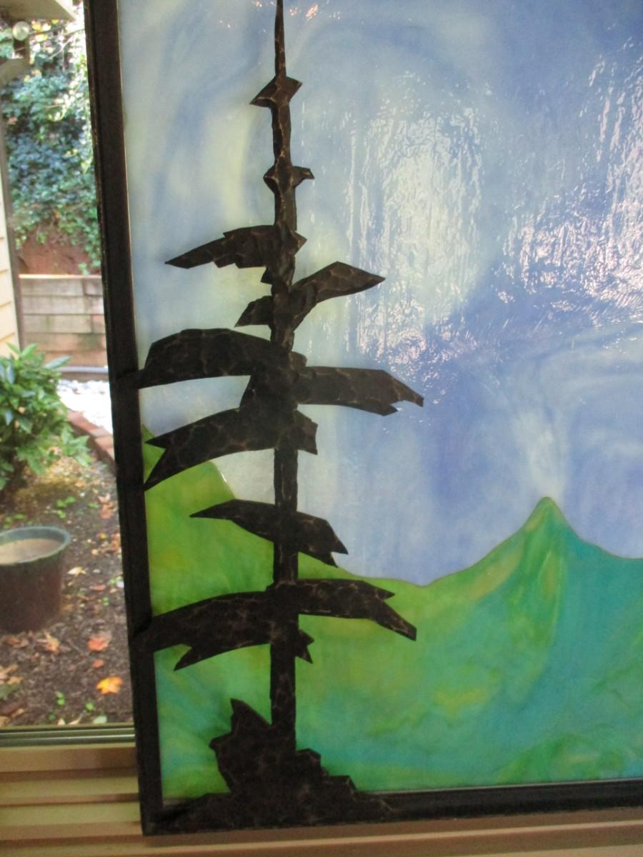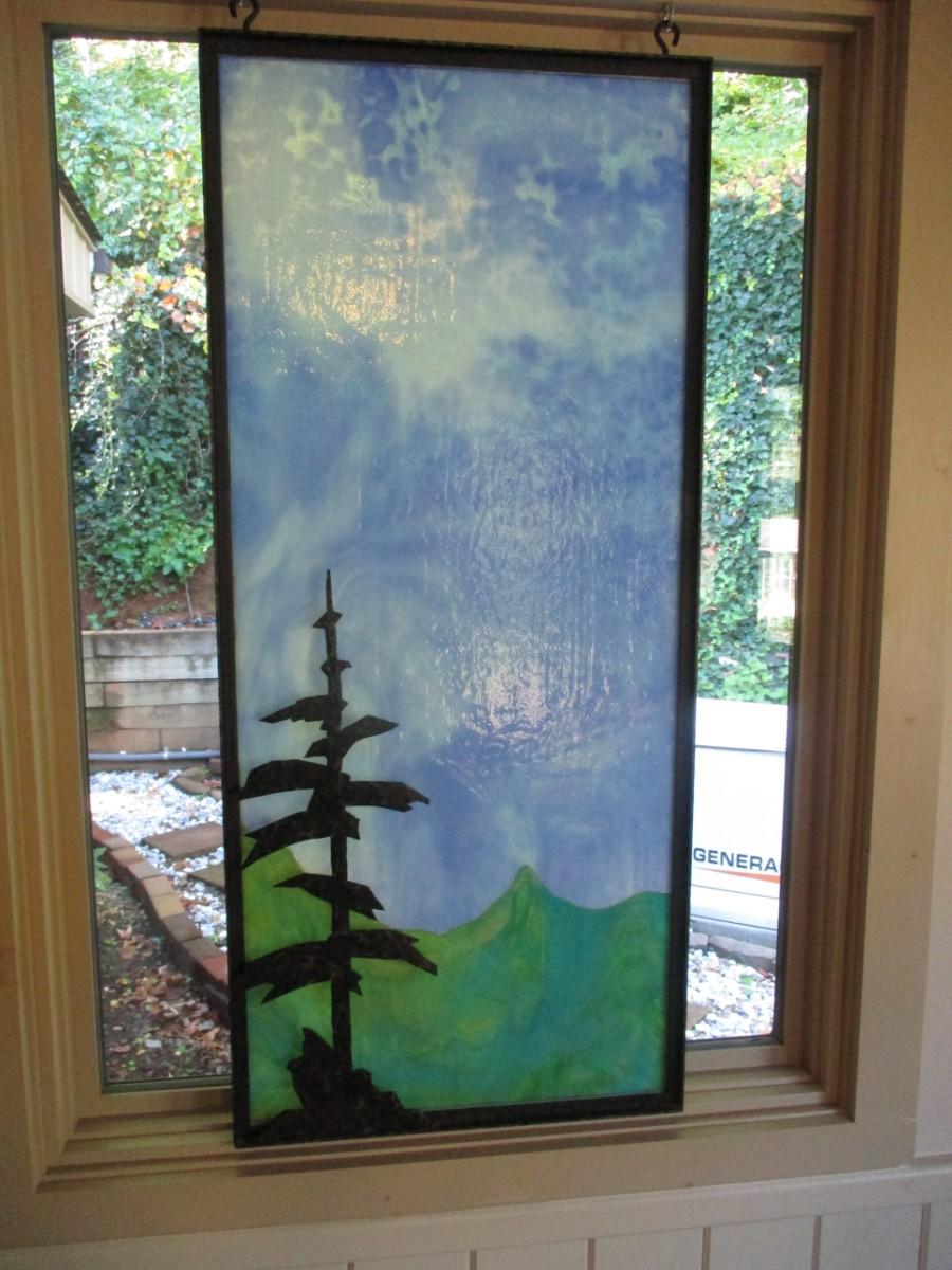 Large Stained Glass Blue Ridge Mountains Landscape Scene - A