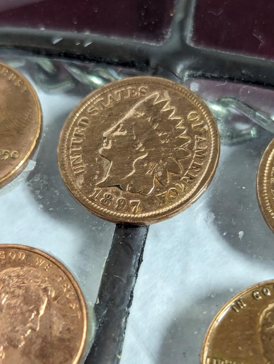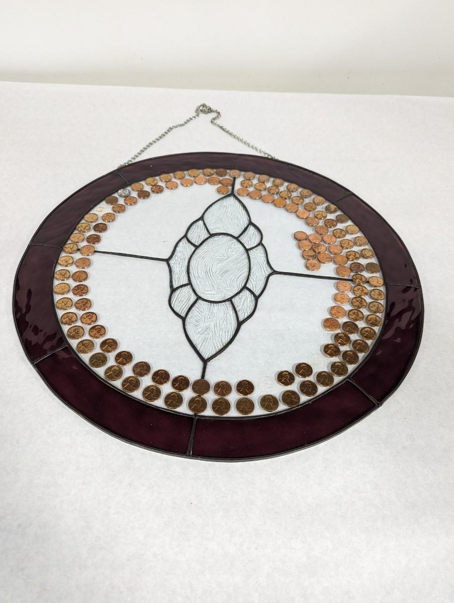 Stained Glass Wall Decor With Glued On Pennies 1897 - 2016