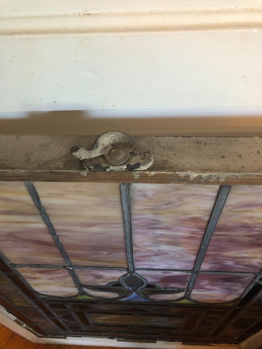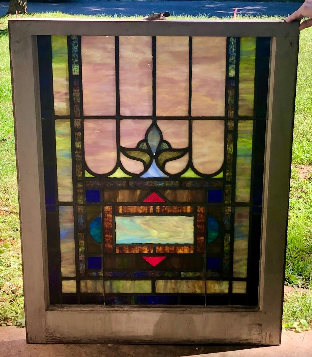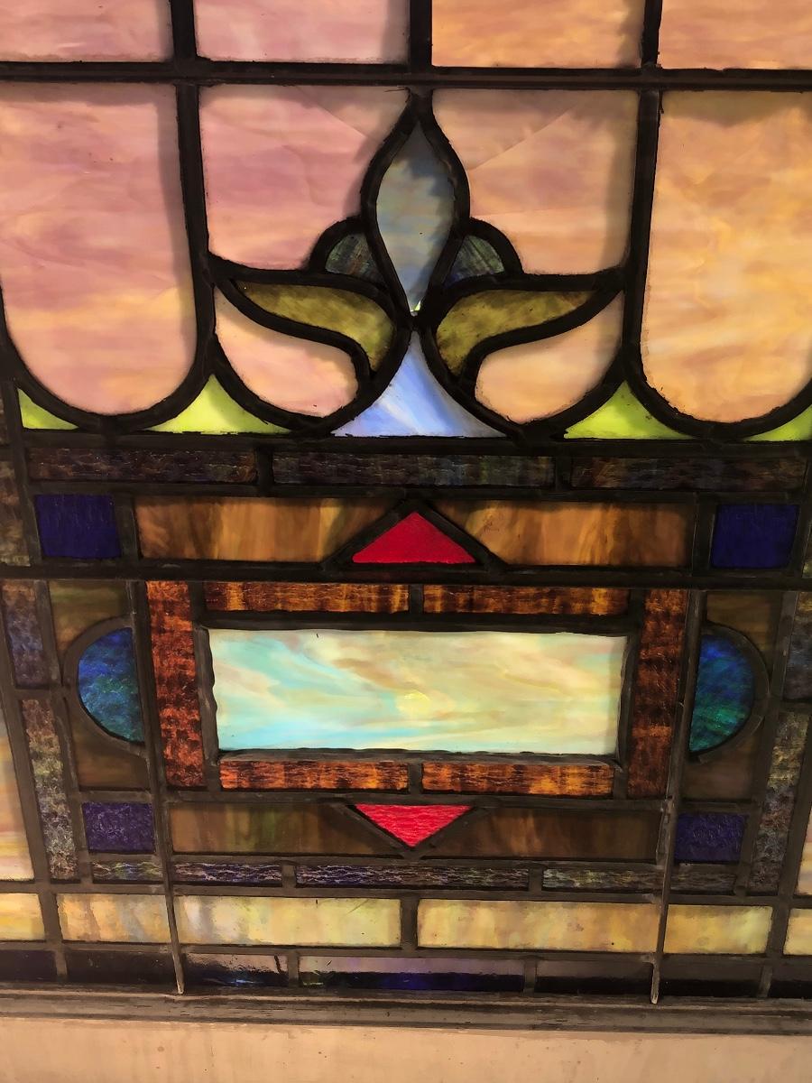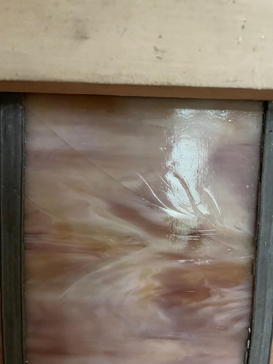 Lot 4 of 10, this stained glass window came from a church and has a blank name panel just waiting for someone to add their family name to it. Some of the glazing is missing and it does have a crack in the glass; the crack is barely visible, it runs left to right in just one section approximately 4” total, see images.