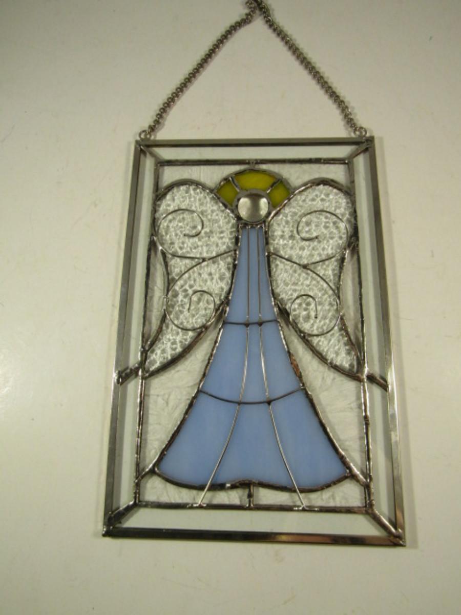 Stained Glass Window Hanging- Angel Design- Approx 6" x 9"