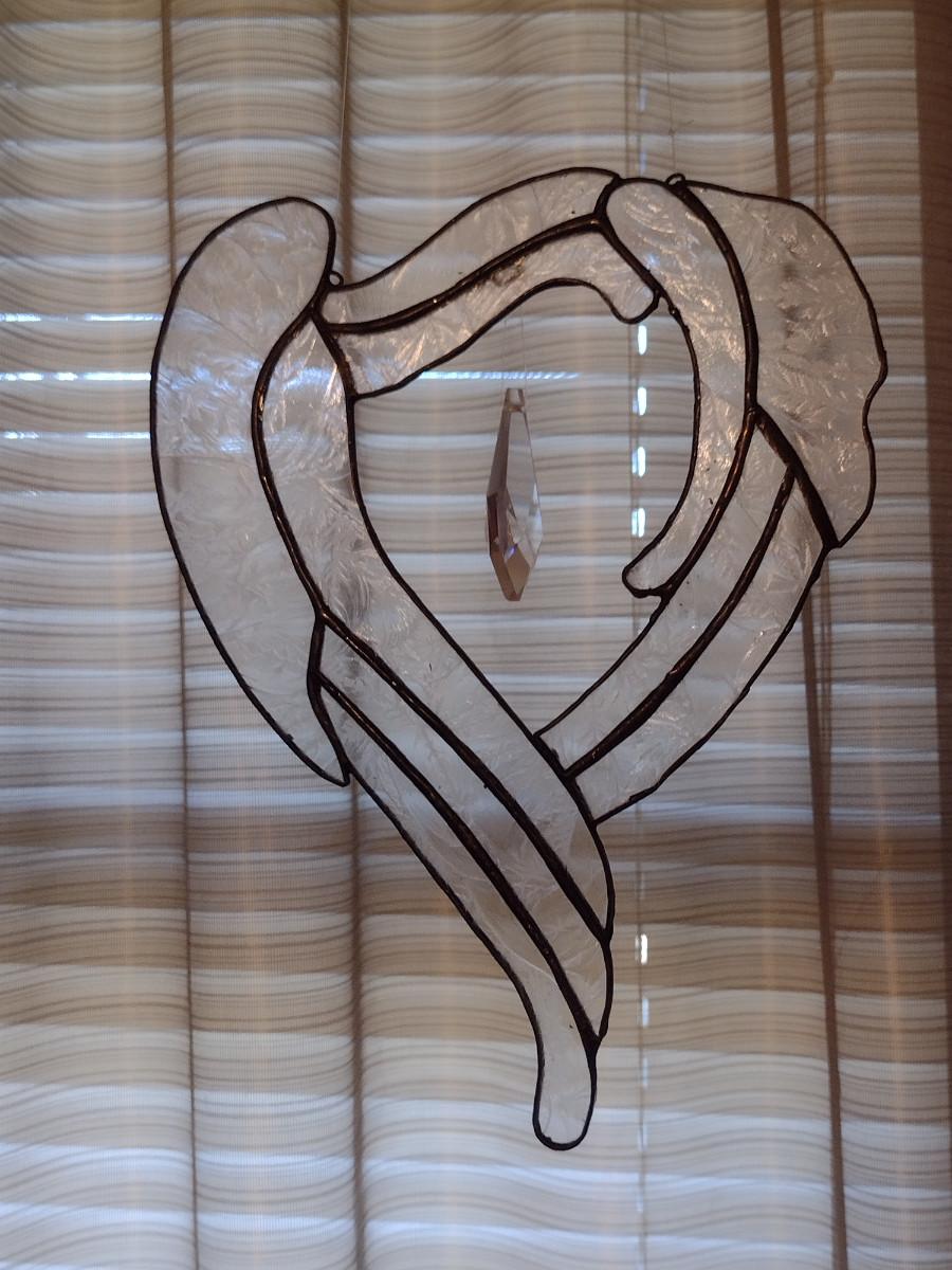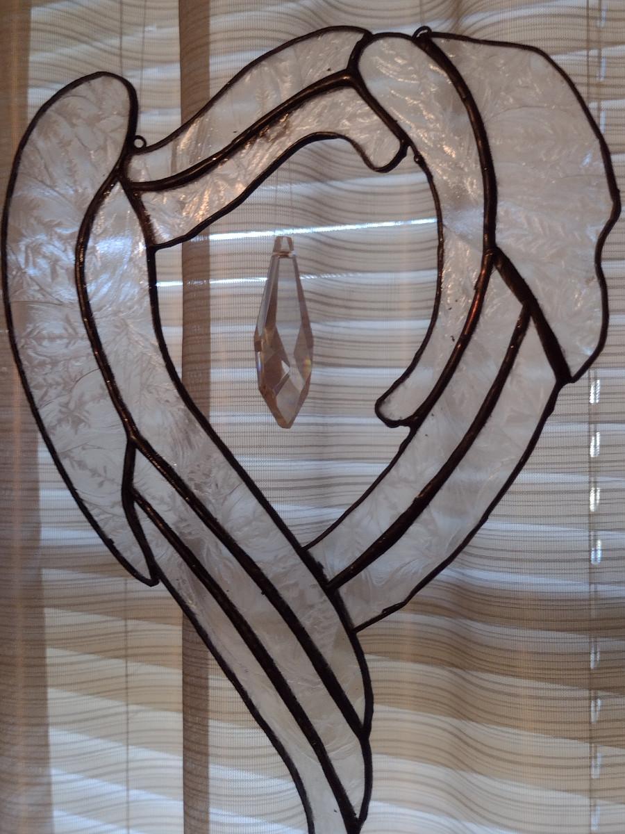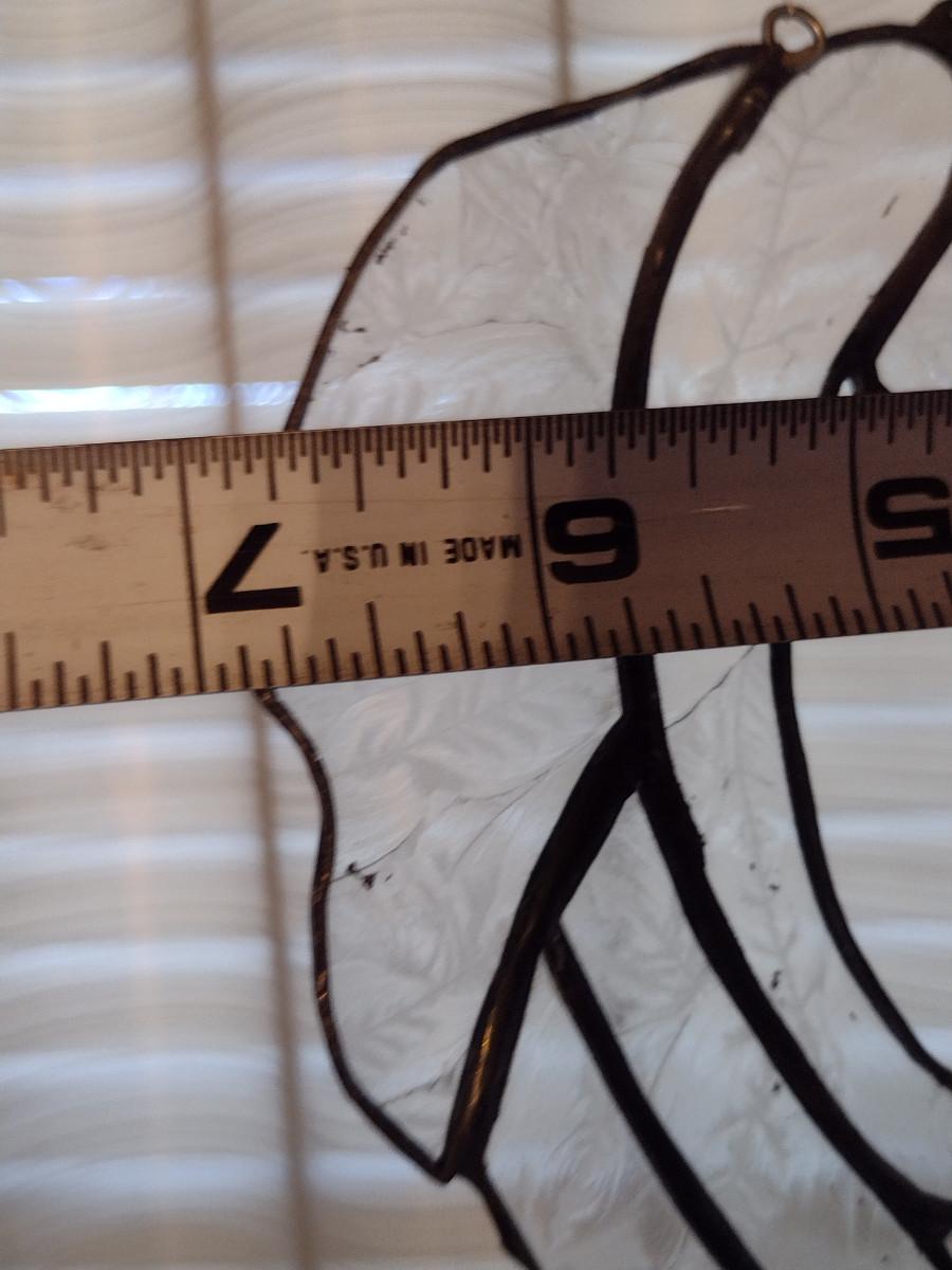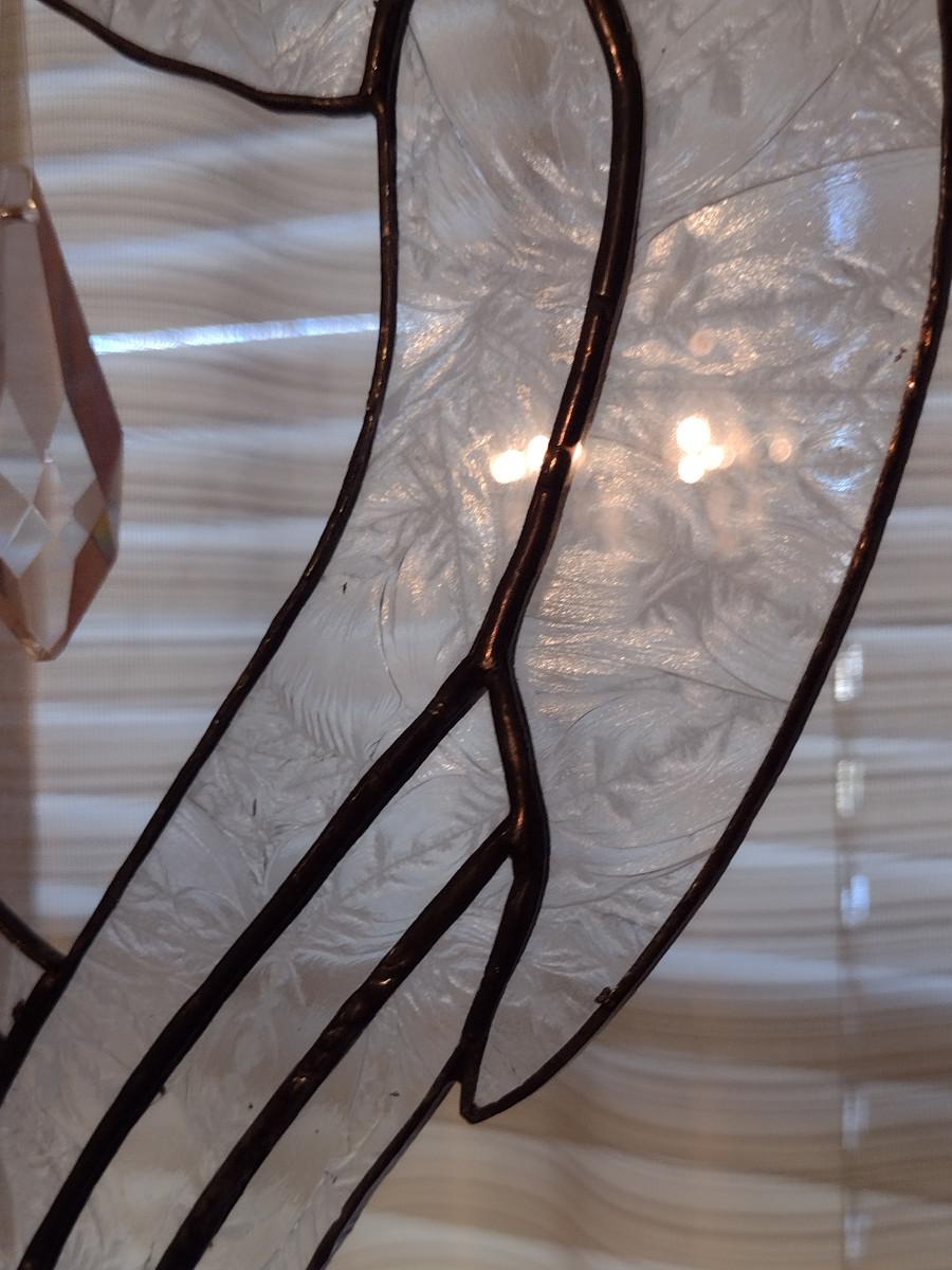 Stained Glass Window Hanging with Crystal Prism Sun Catcher. Approx 8 1/2" tall, 7" wide.
