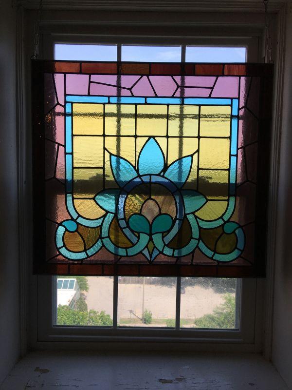 Stained Glass Window Panel Early 20th Century Arts & Crafts Style Lot 127