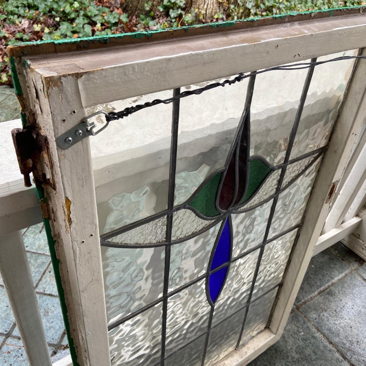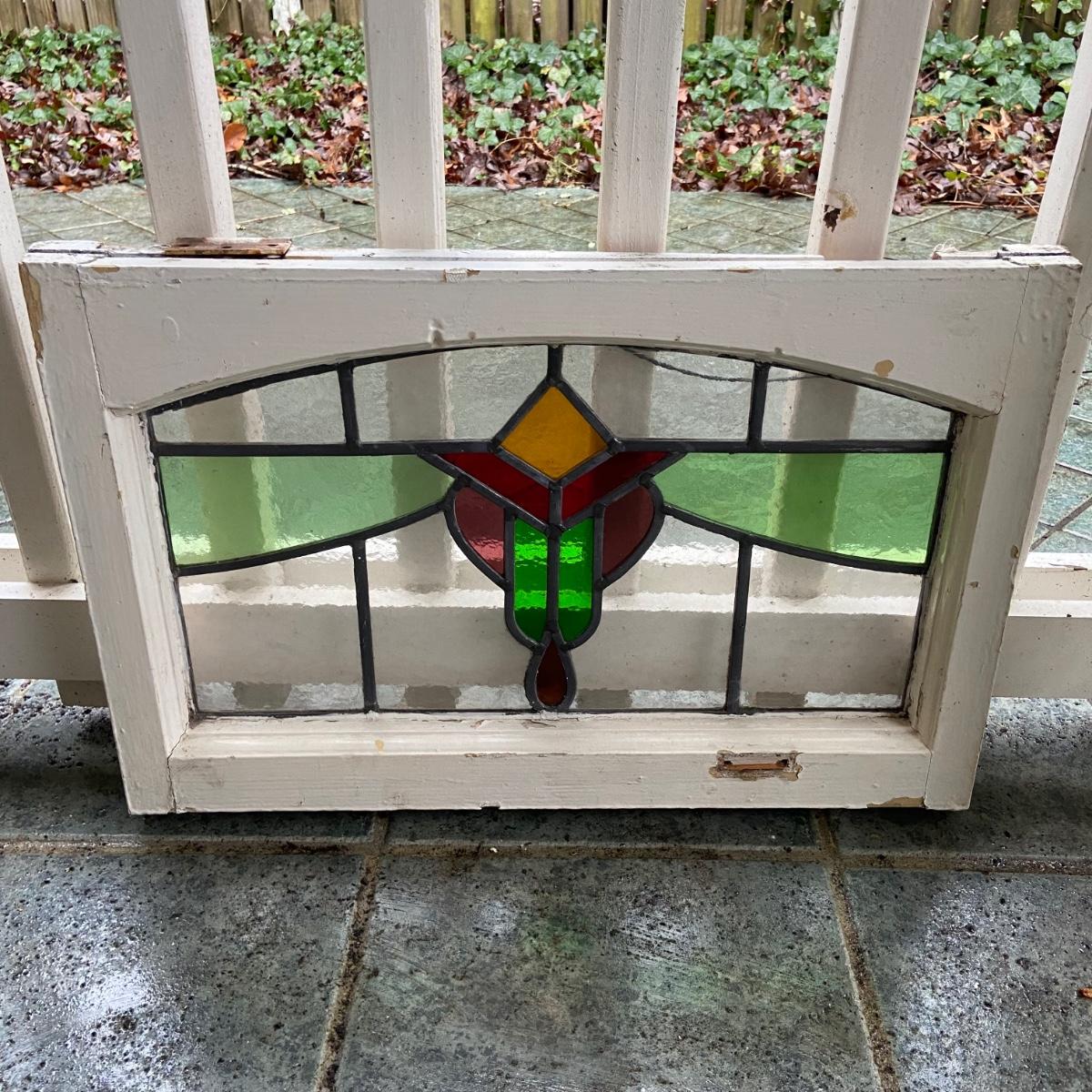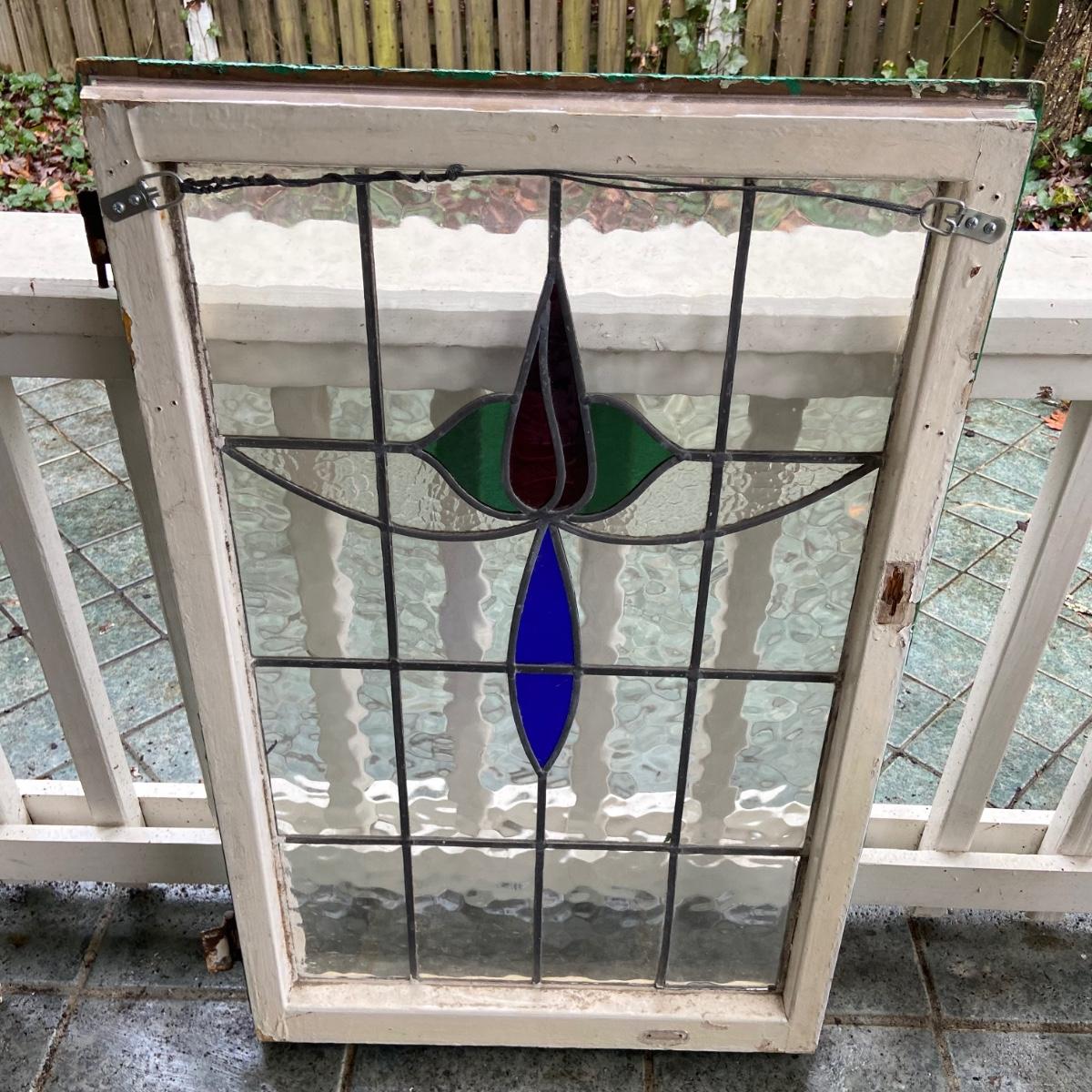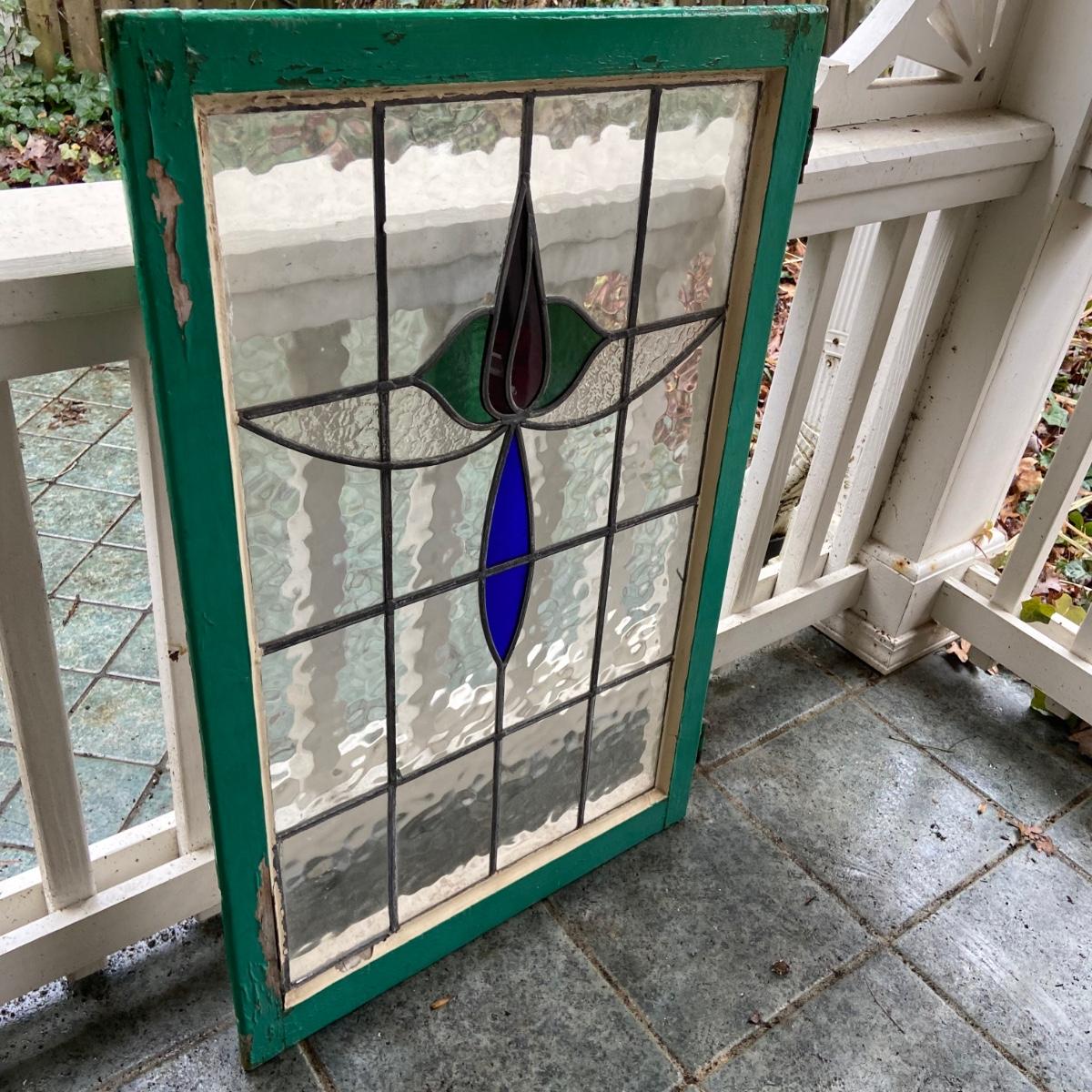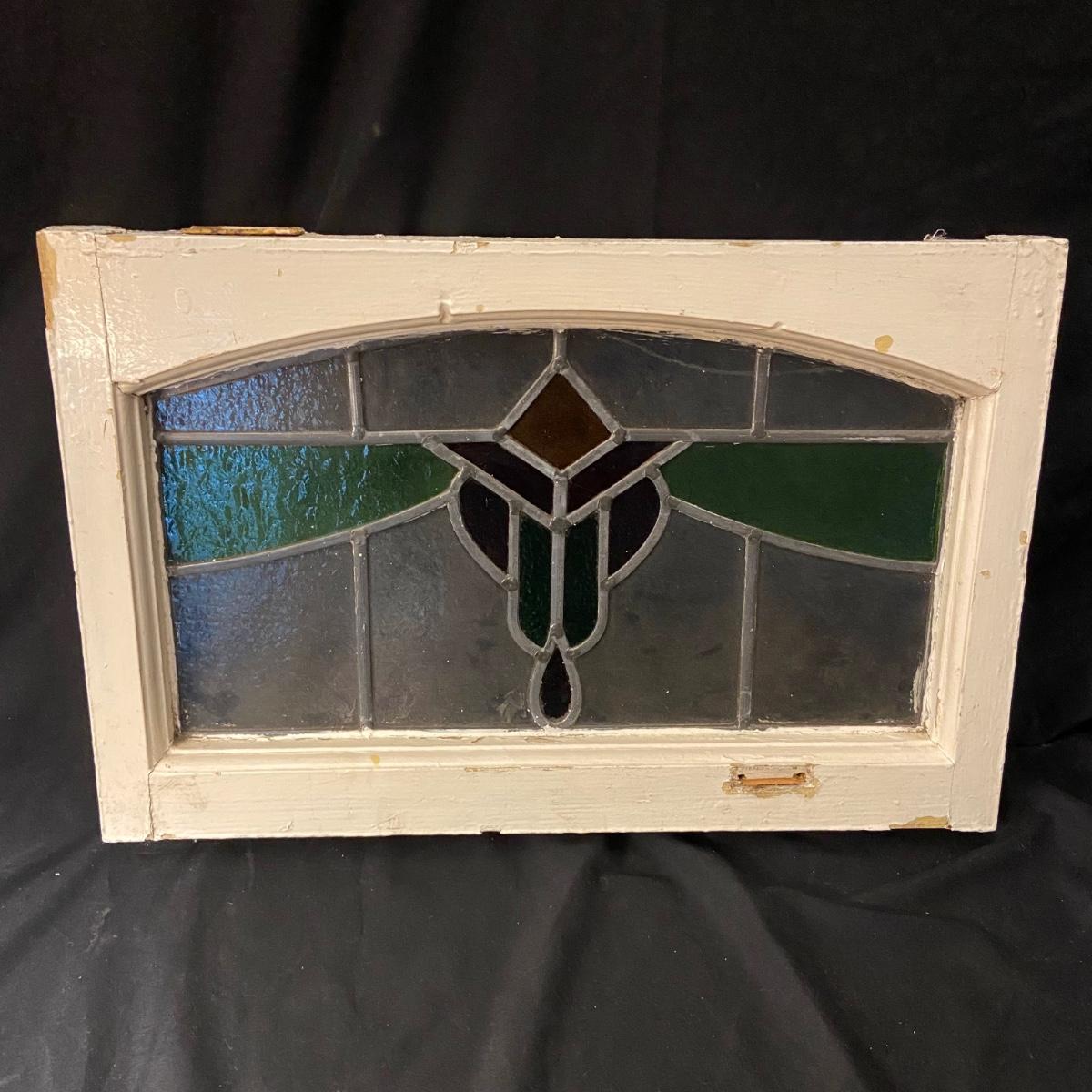 This lot includes two stained glass windows in wooden frames. The first stained glass is set in a white painted frame and measures 22.5” x 14.5”. The second is larger measuring 23.5” x 37” and is in a wooden frame painted green. There are some chips in the paint on both frames and the small white frame does have some damage on the back. Both pieces come equipped with hangers on back. Shipping available. Shipping can be costly. We suggest contacting our preferred local shipping provider, Postage Express, with dimensions and getting an estimate before bidding: (828) 255-9250 or shipping@postageexpressnc.com.