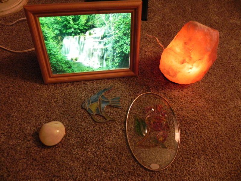 SOOTHING WATERFALL MOTION PICTURE LIGHT, SALT ROCK LIGHT TO REMOVE AIR IMPURITIES, SMALL WINDOW HANGING GLASS PIECE AND MORE