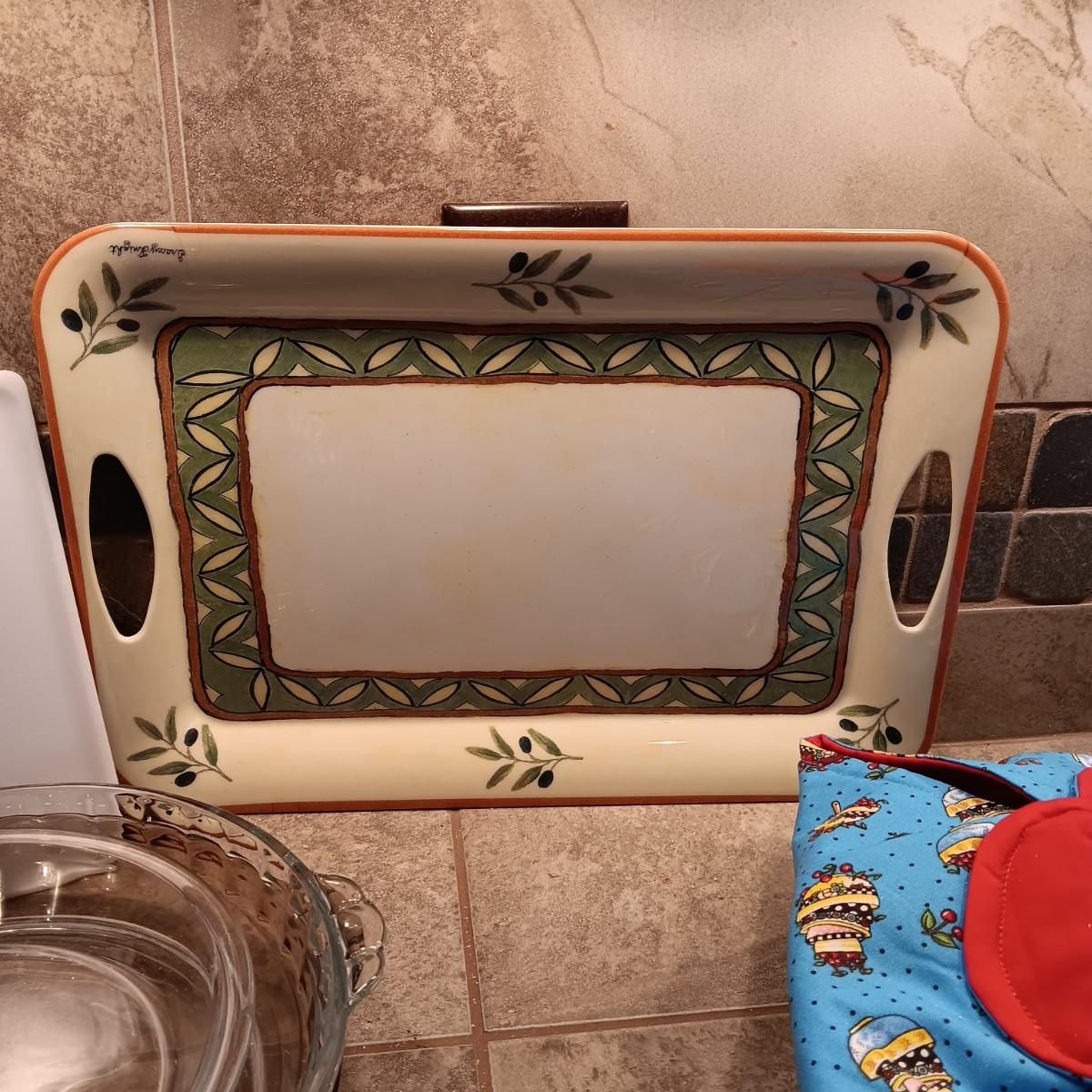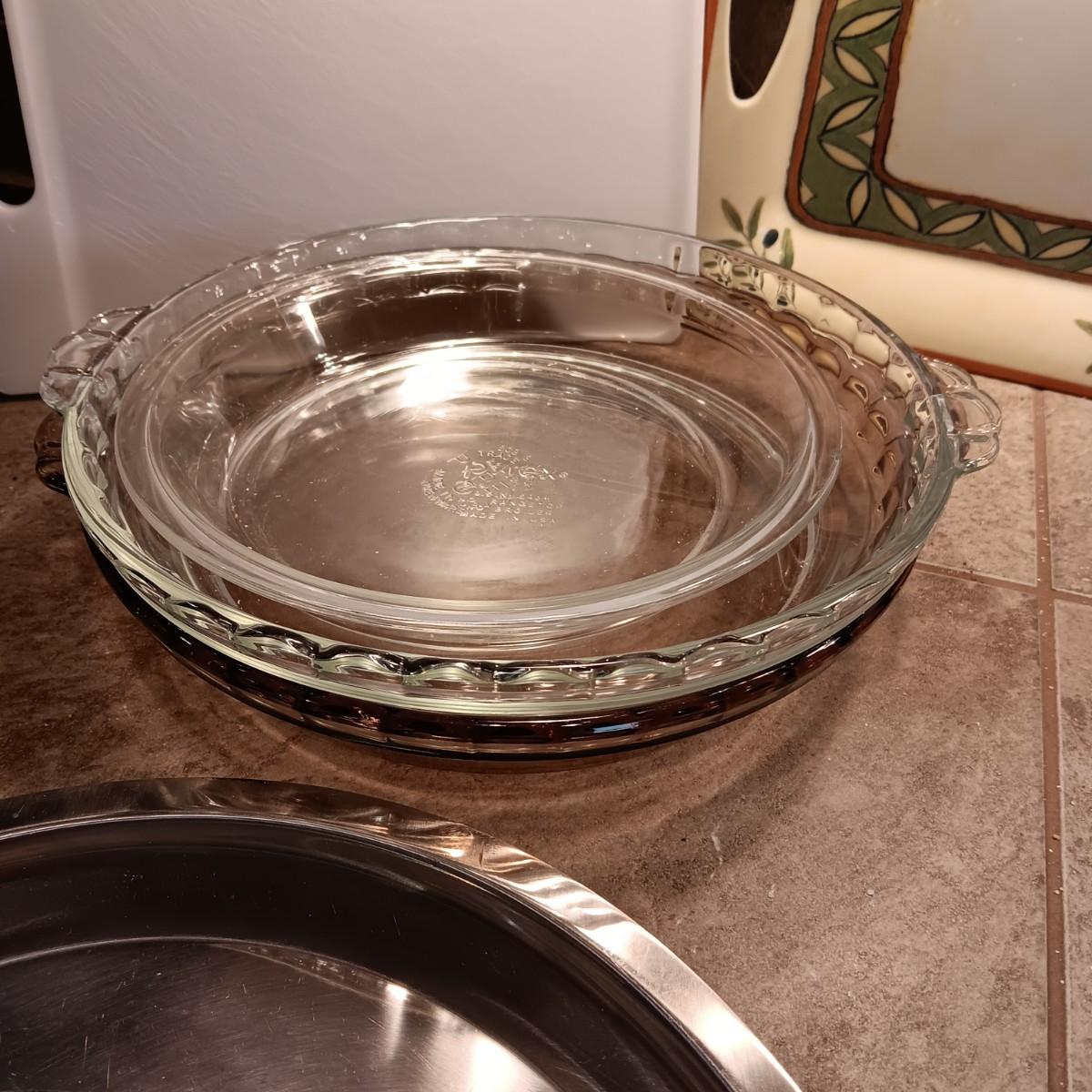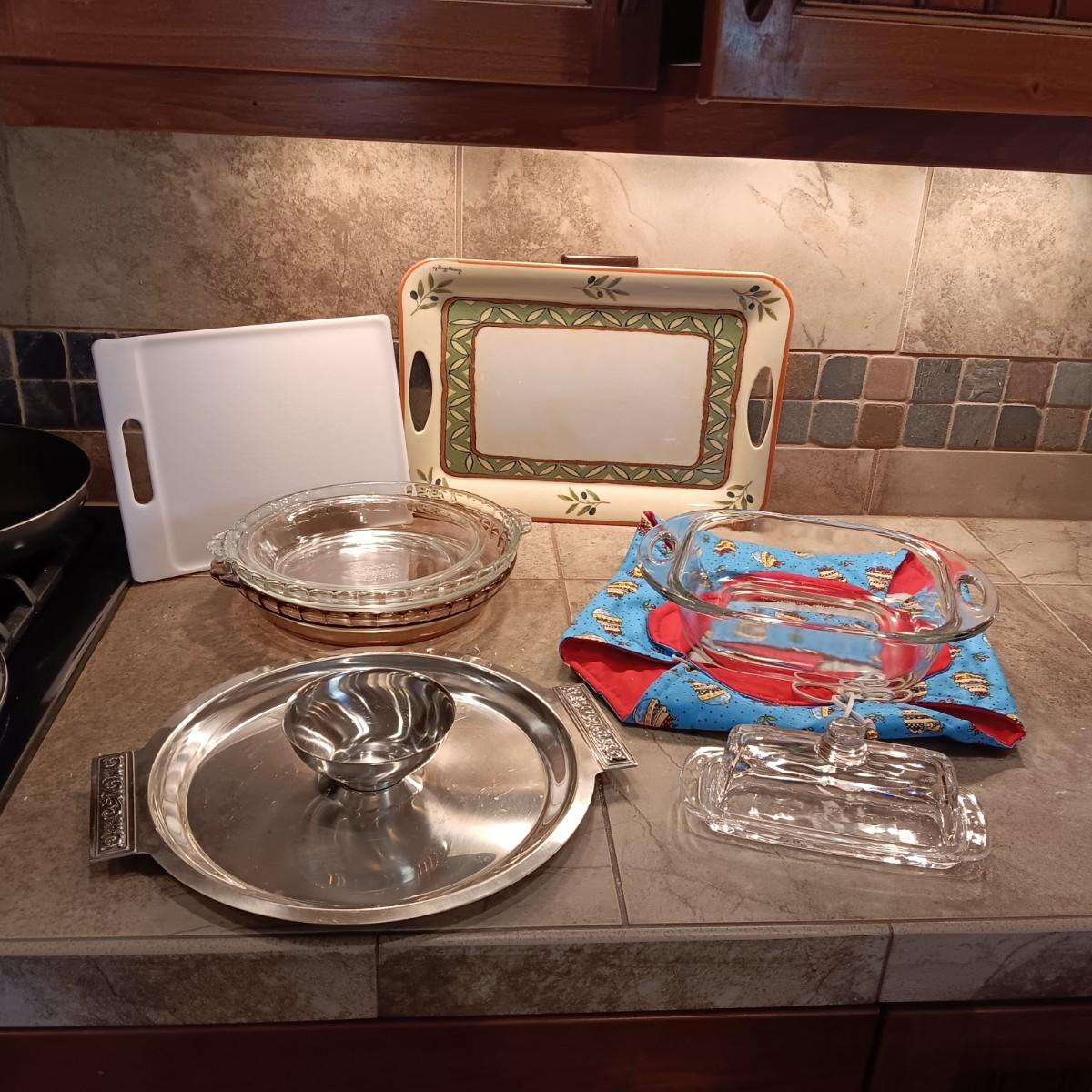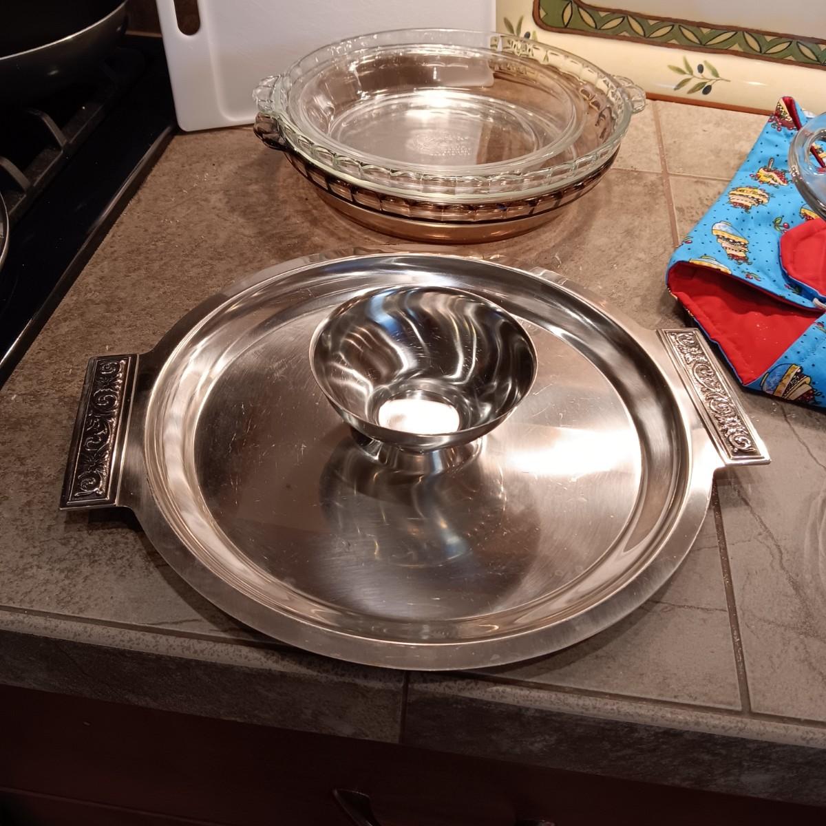 STAINLESS CHIP AND DIP TRAY, CASSEROLE DISH AND WARMER, PIE PANS AND MORE