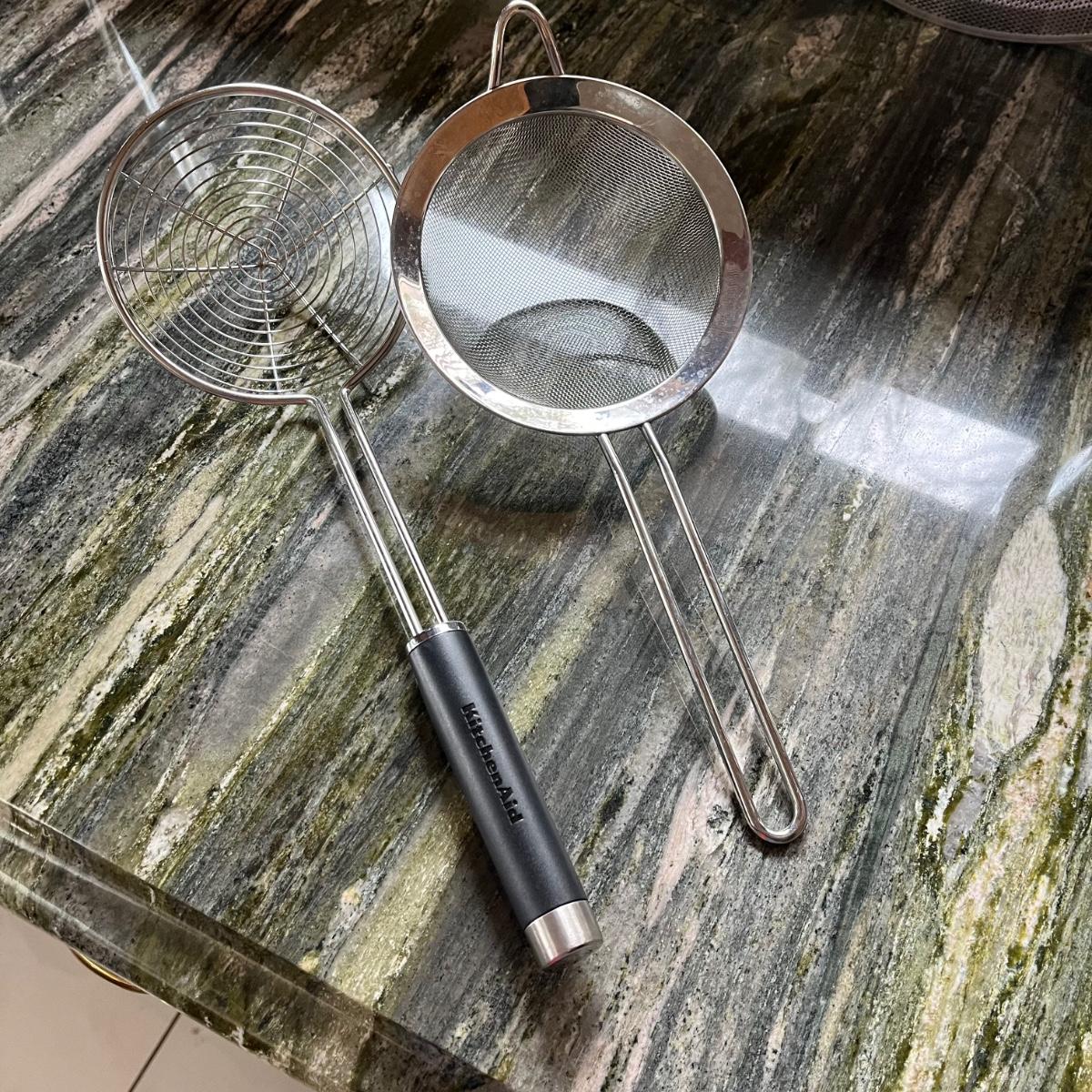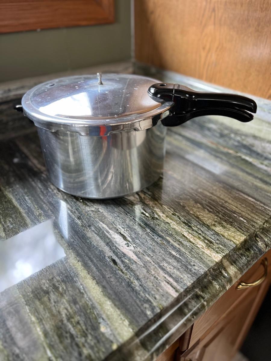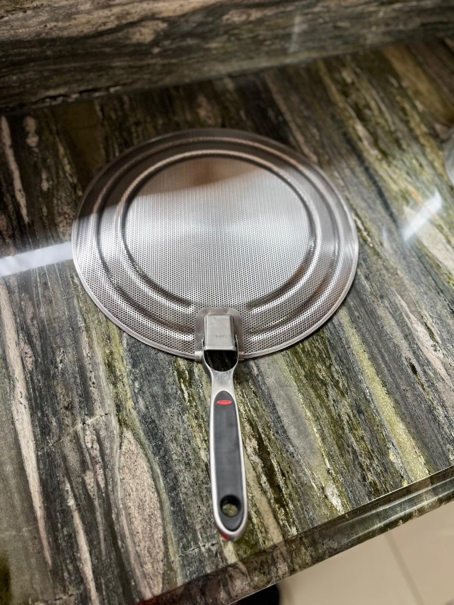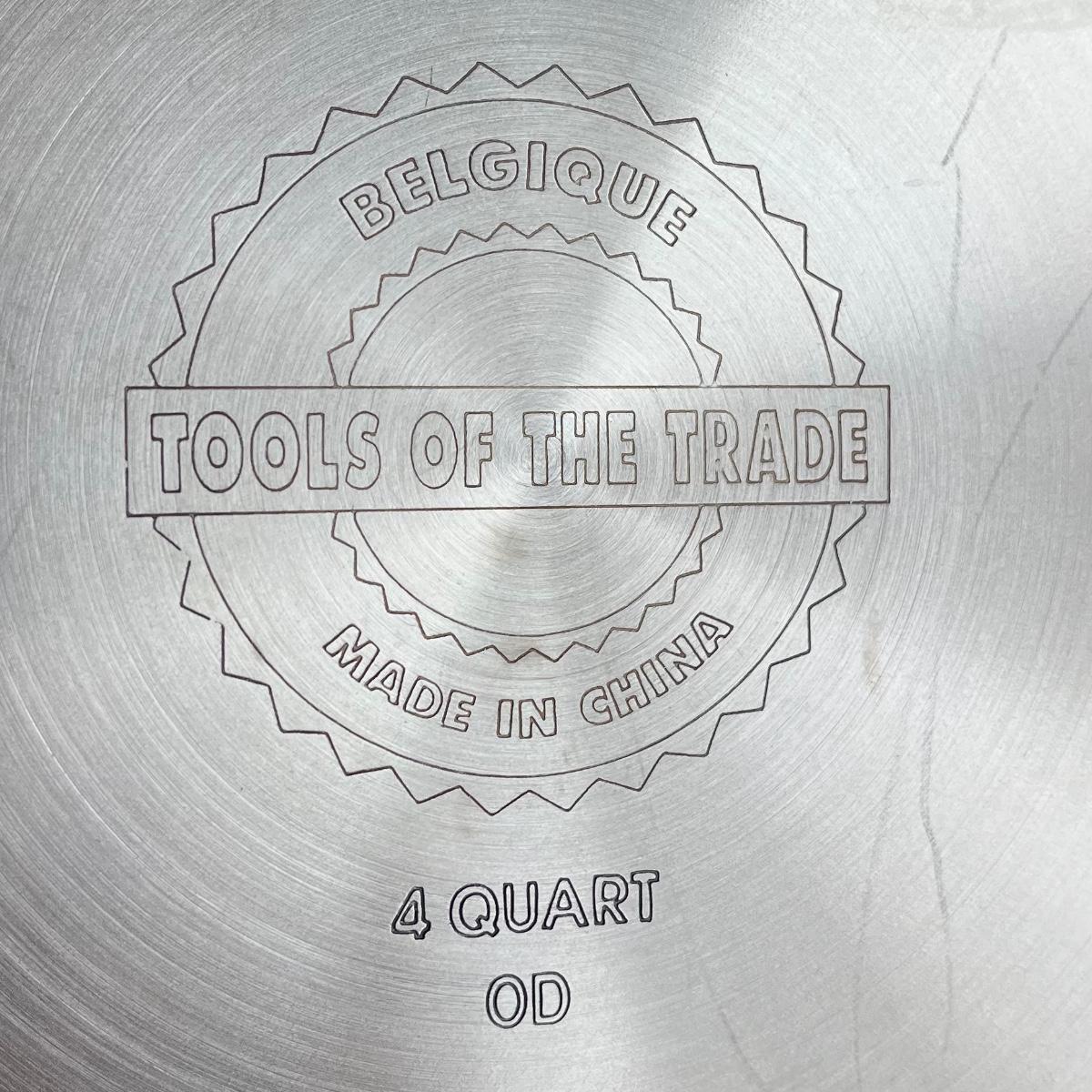 This collection contains six items. One large stock pot with glass lid measuring 12”D x 12”H to top of handle. one sauté pan with glass lid, a Presto traditional pressure cooker, two strainers and a folding splatter shield. Signs of wear. Shipping available.
