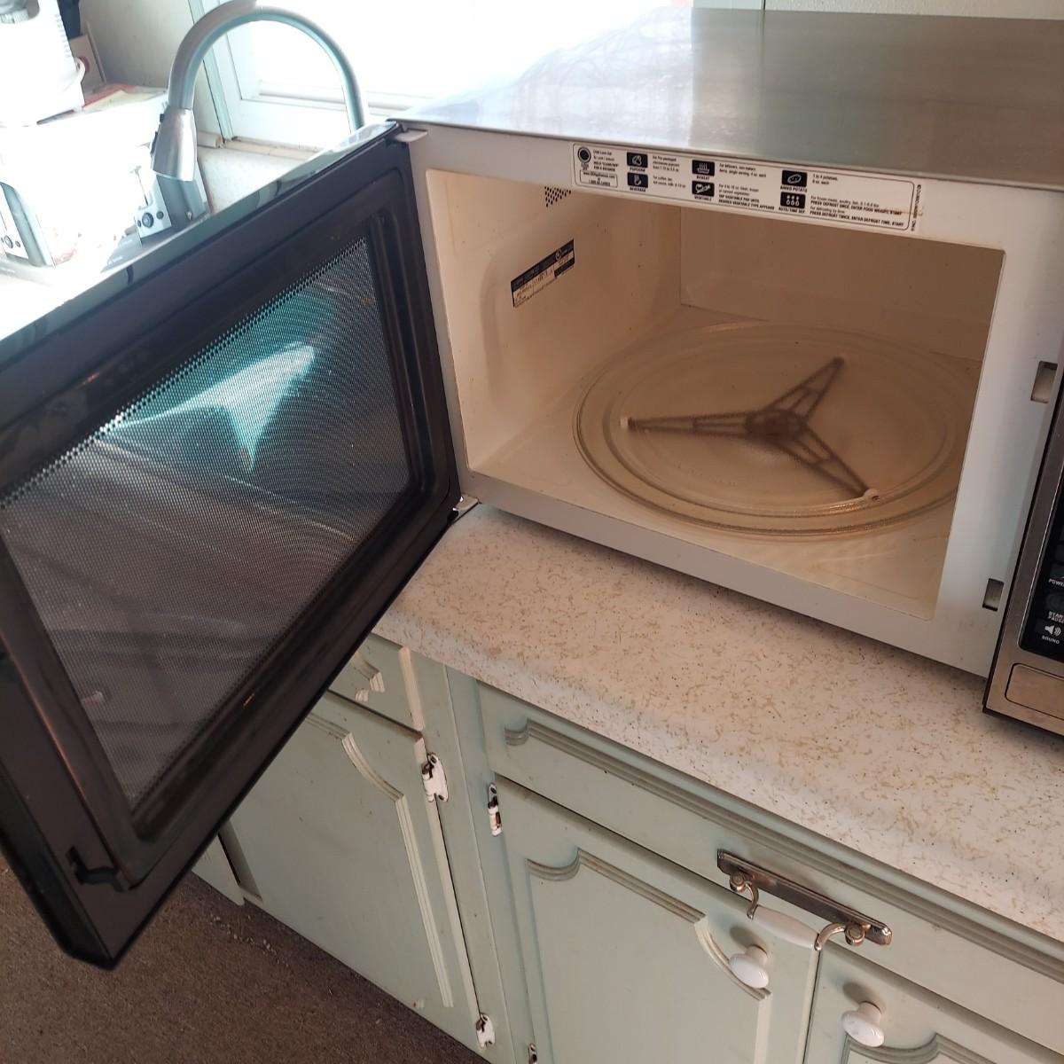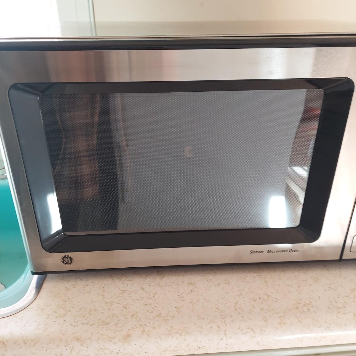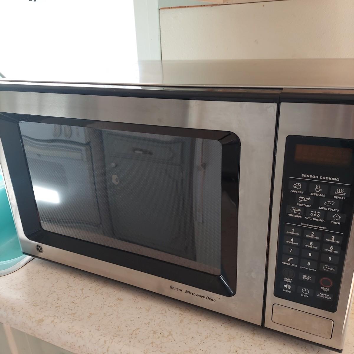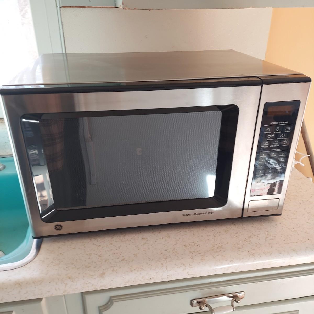 GE brand microwave with stainless finish. Microwave measures approximately 23” x 17” x 14"H. Please see photos for details. Local Pickup Only