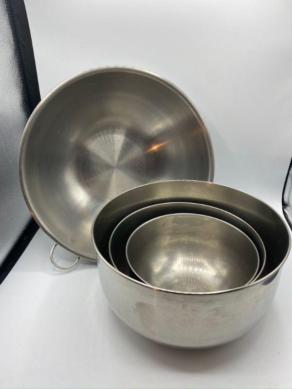 Stainless Steel Mixing Bowls. 4 different sizes. Good previously owned condition.