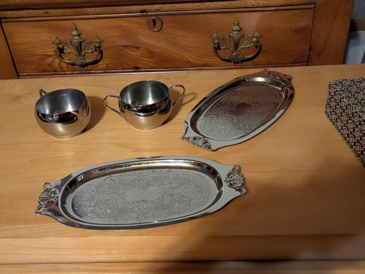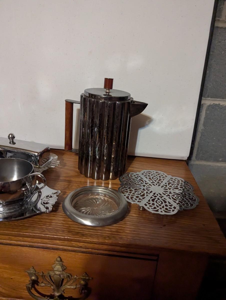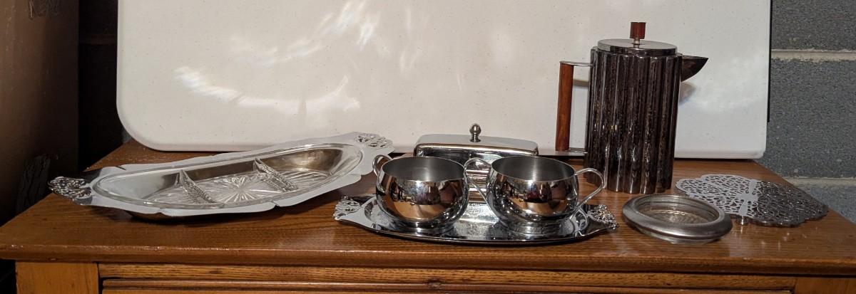 Stainless Silver Serving Dishes & MMA Coffee Pot