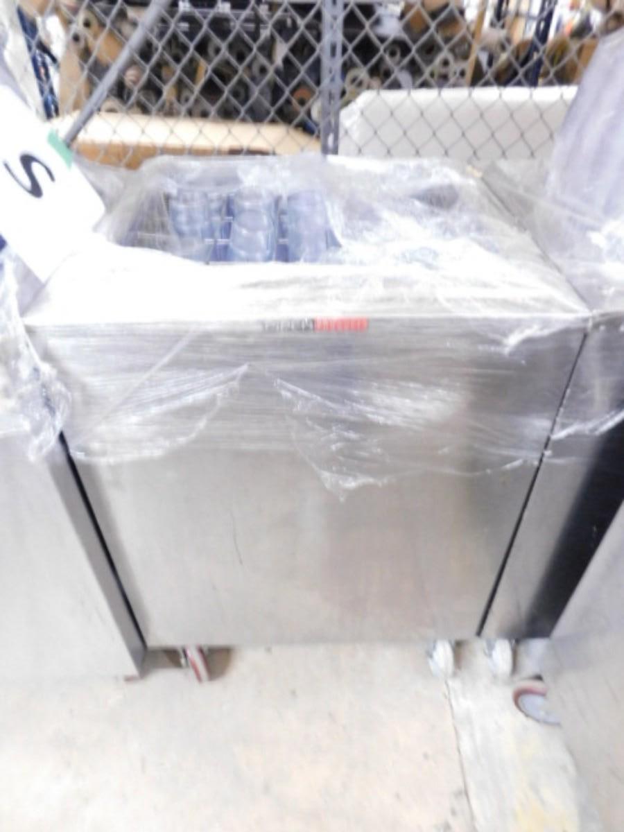 Stainless Spring Lift Drinking Glass Mobile Caddy Choice B. Unknown glass count Shipping option via freight or local mover is Buyer's responsibility and expense. Buyer must have all shipping scheduled within the stated dates and times of pickup. Recommended local mover is Beaty Bros. Moving 828-201-2982