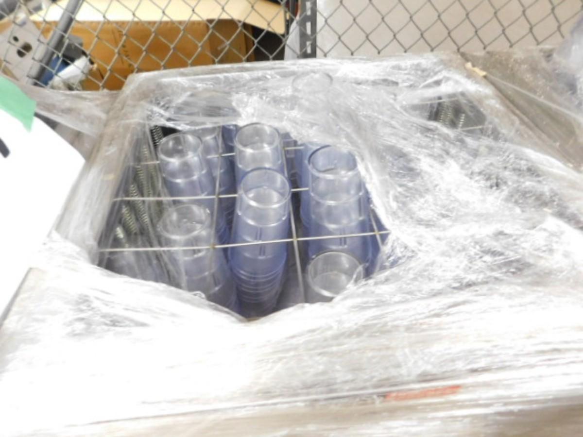 Stainless Spring Lift Drinking Glass Mobile Caddy Unknown glass count Shipping option via freight or local mover is Buyer's responsibility and expense. Buyer must have all shipping scheduled within the stated dates and times of pickup. Recommended local mover is Beaty Bros. Moving 828-201-2982