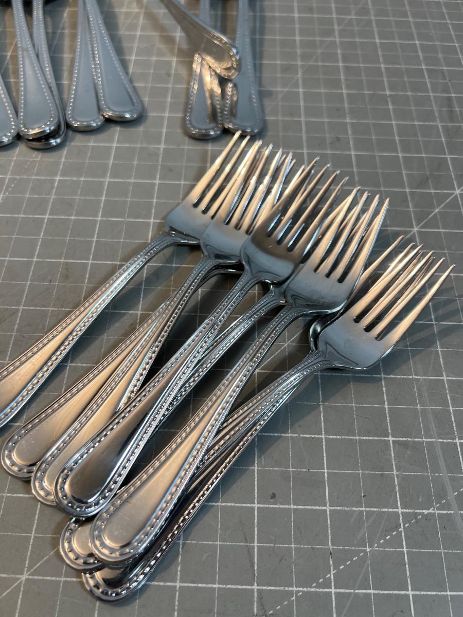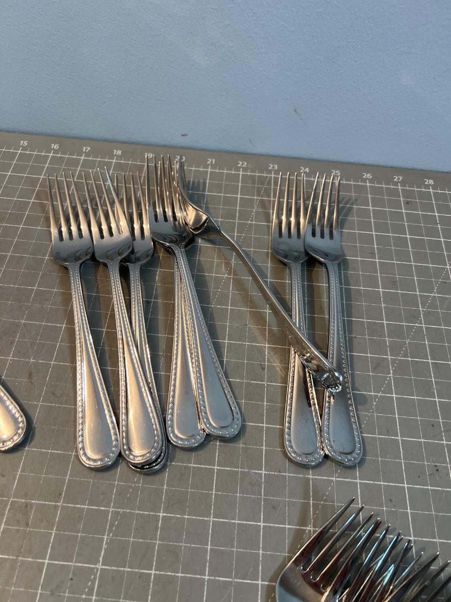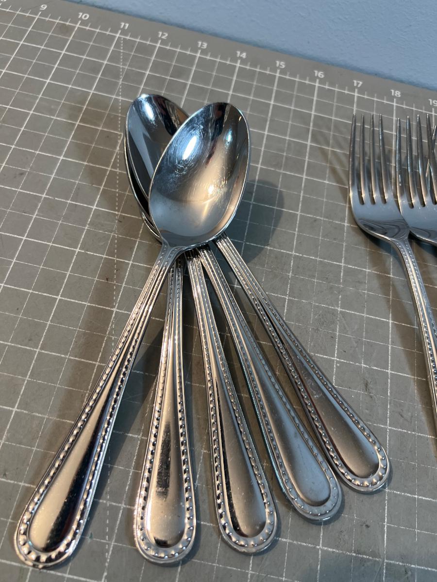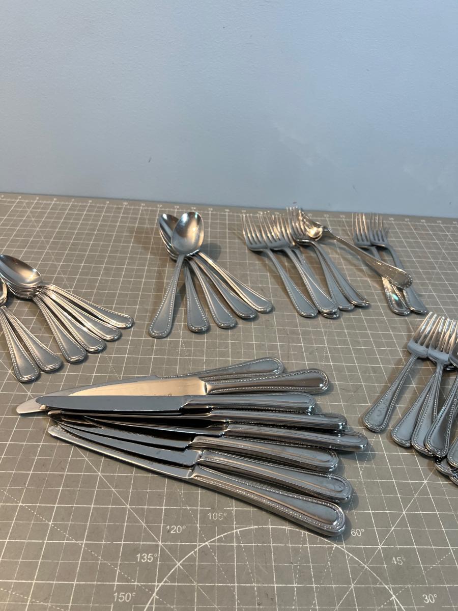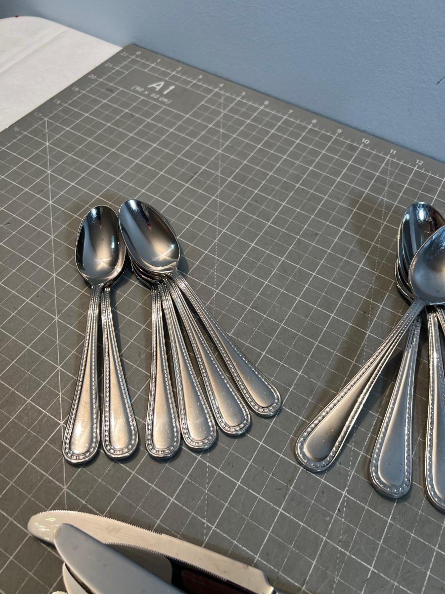 8 of everything but the spoons. NICE. Good Condition. Not complete though.