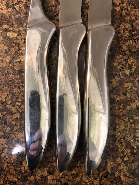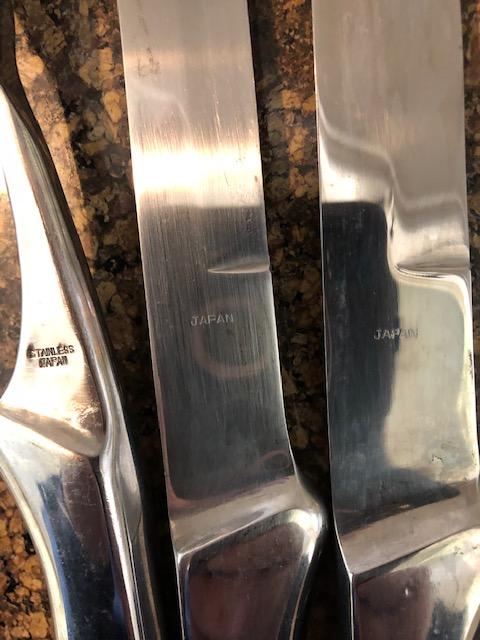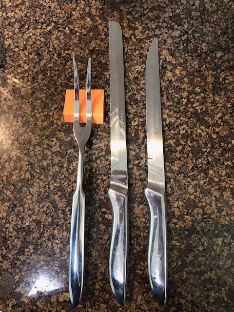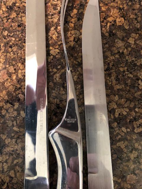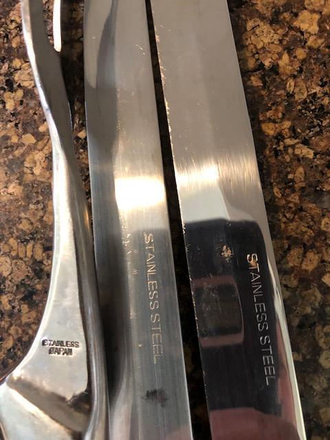 3-pieces. 2 Knives (14 1/2” & 13 1/2”) and Fork (11 1/2”). Vintage. Japan.