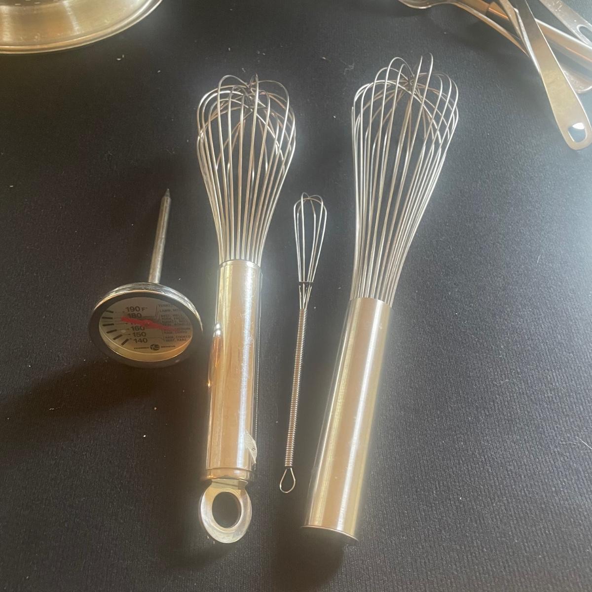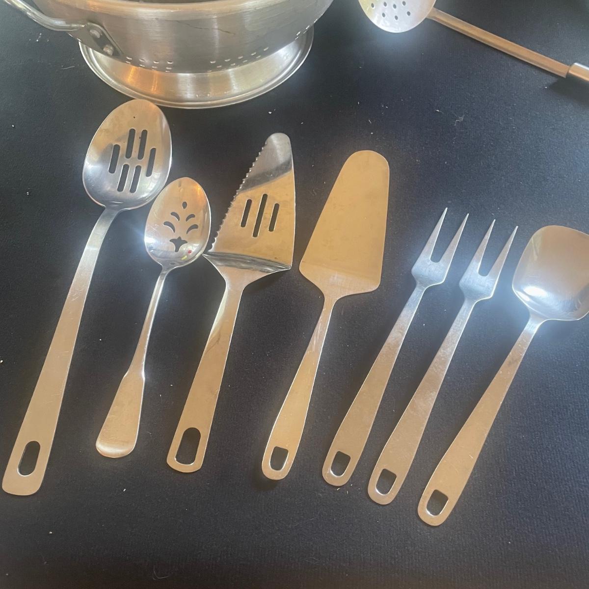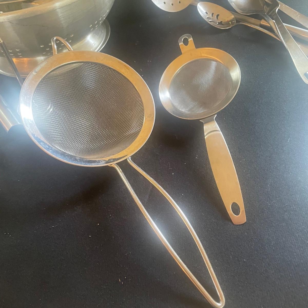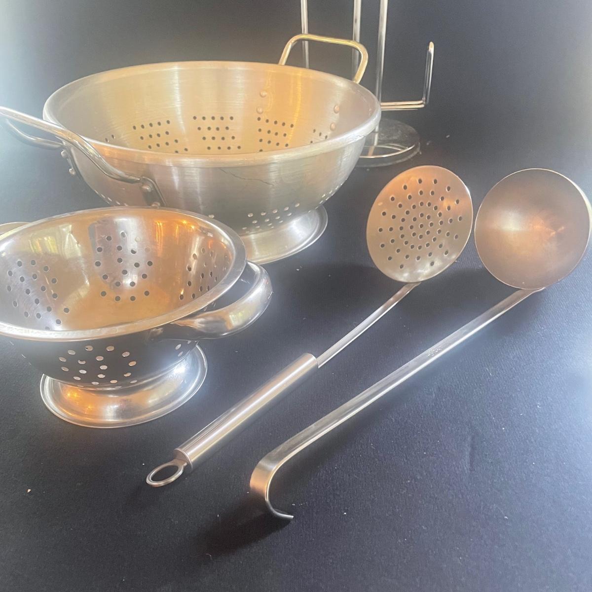 A nice assortment of stainless steel utensils that includes Cook’s Club, Faberware & more, see images. Includes colanders, whisks, strainers, measuring spoons, and much more!