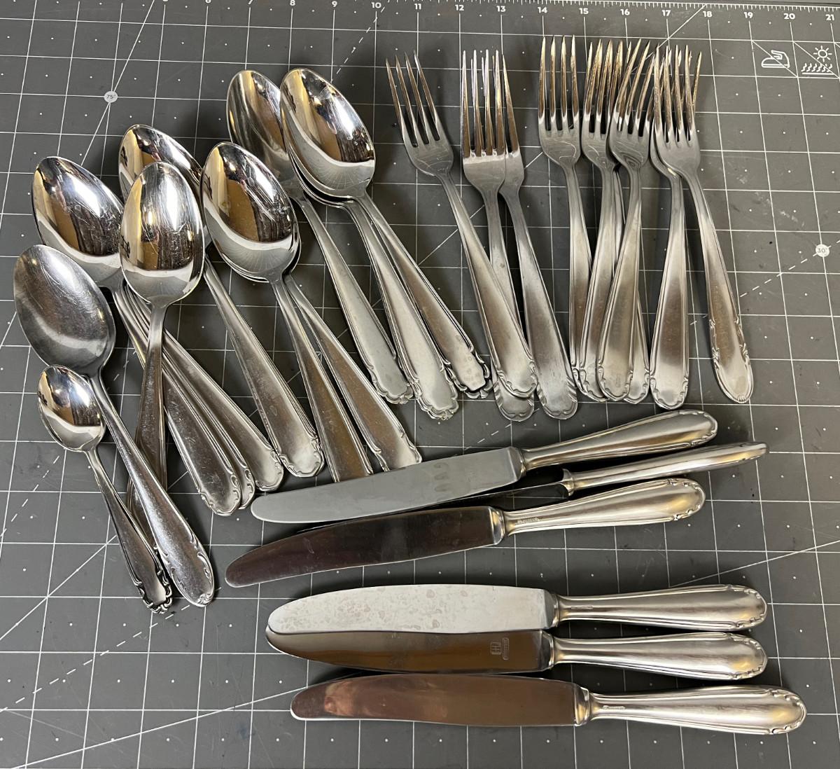 Stainless Steel Dinnerware, partial set