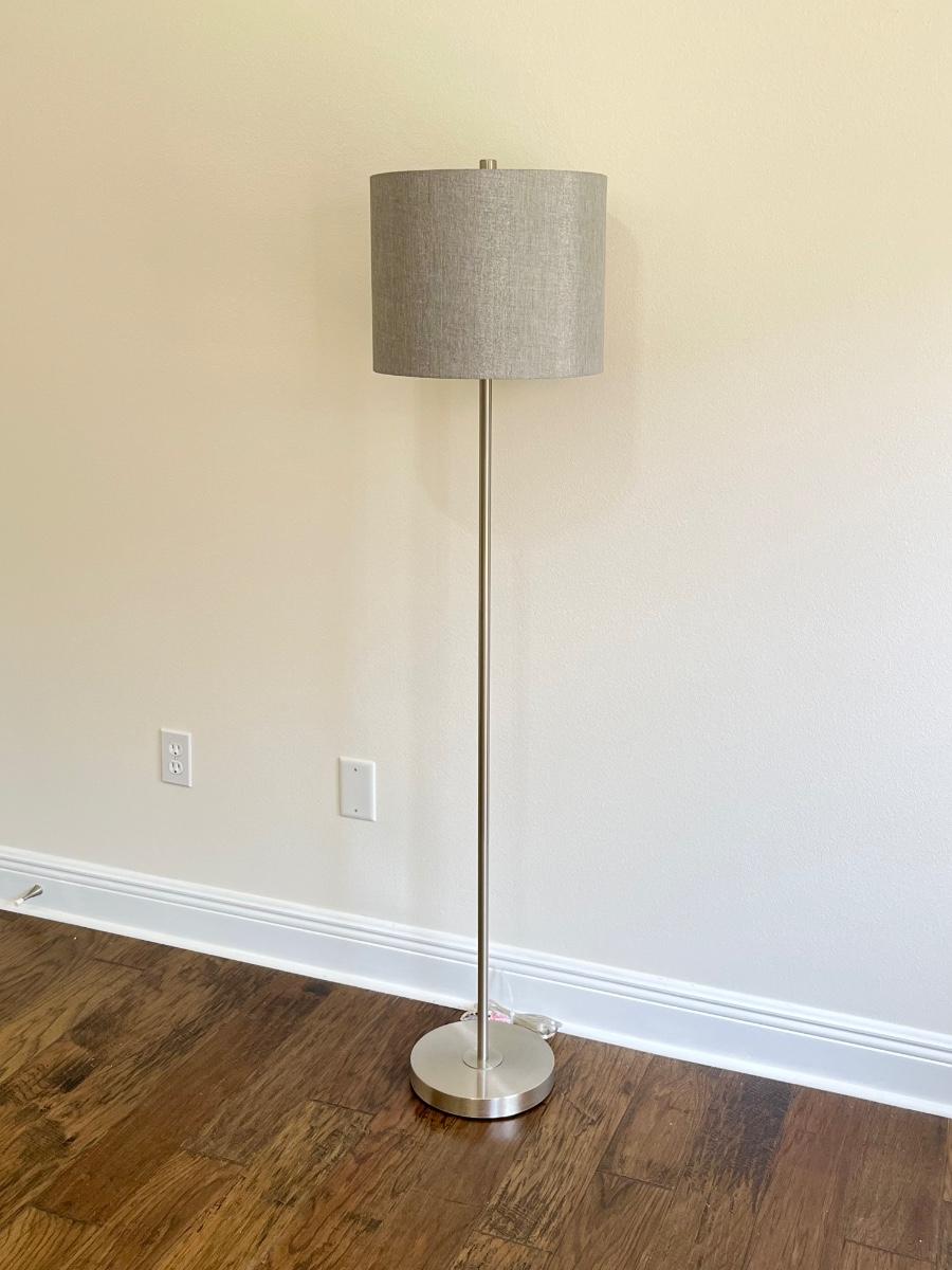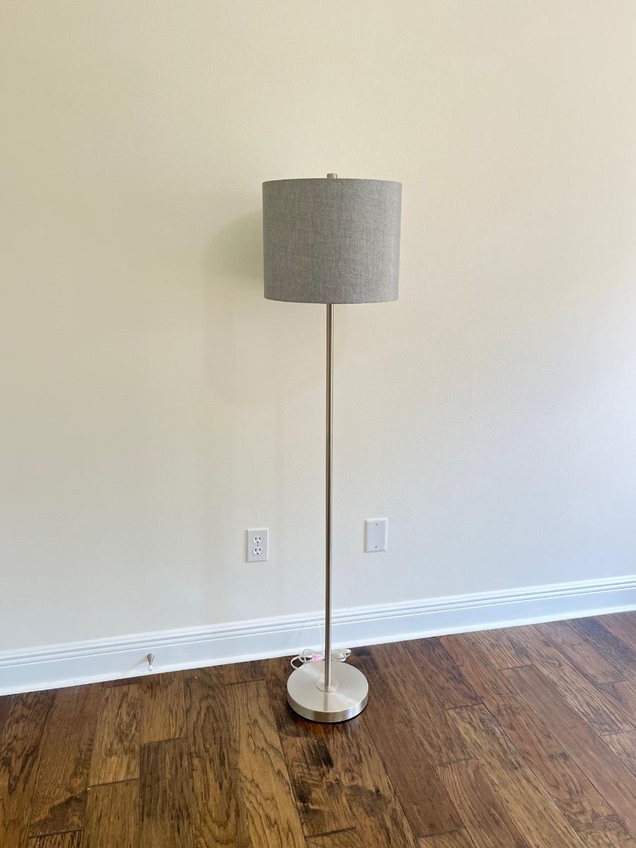 Stainless Steel Floor Lamp ~ Metallic Gray Lampshade
