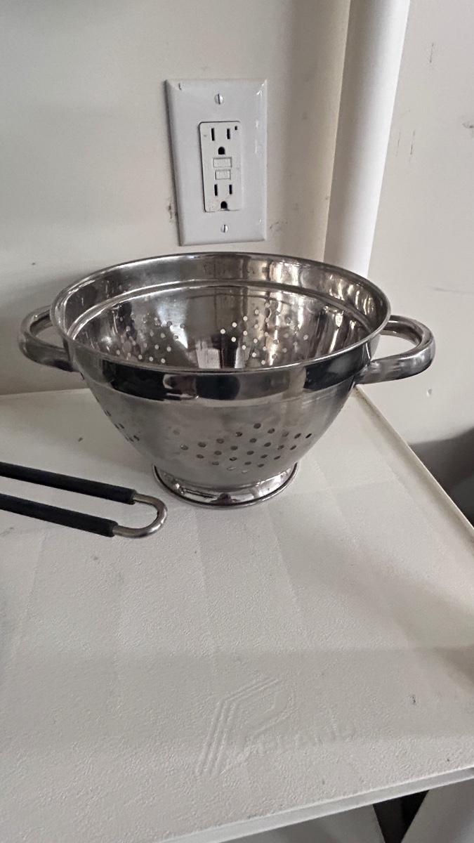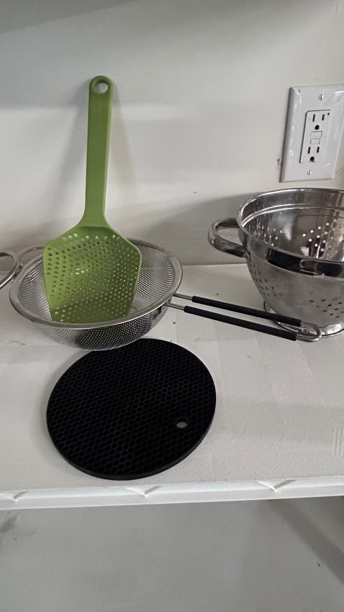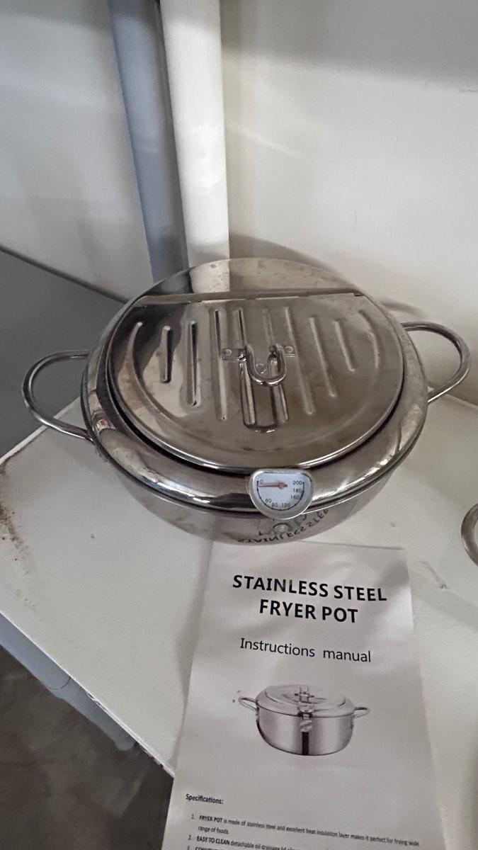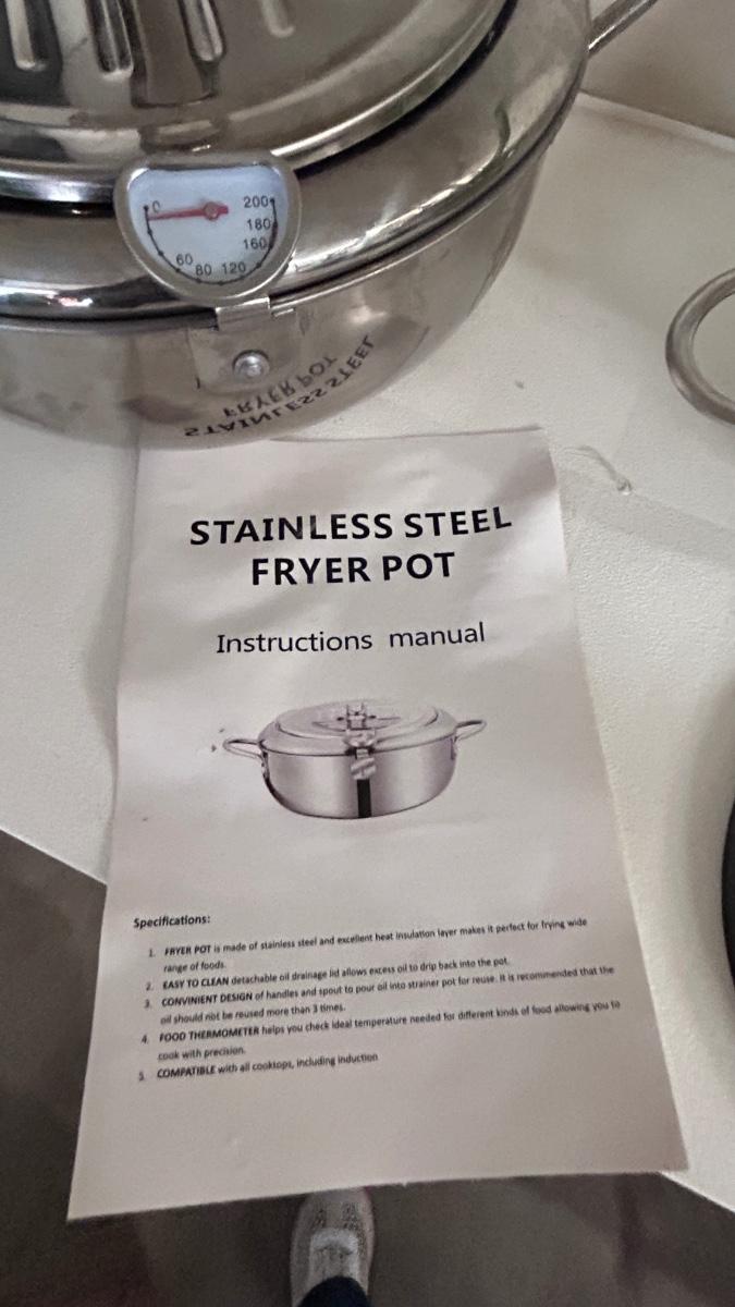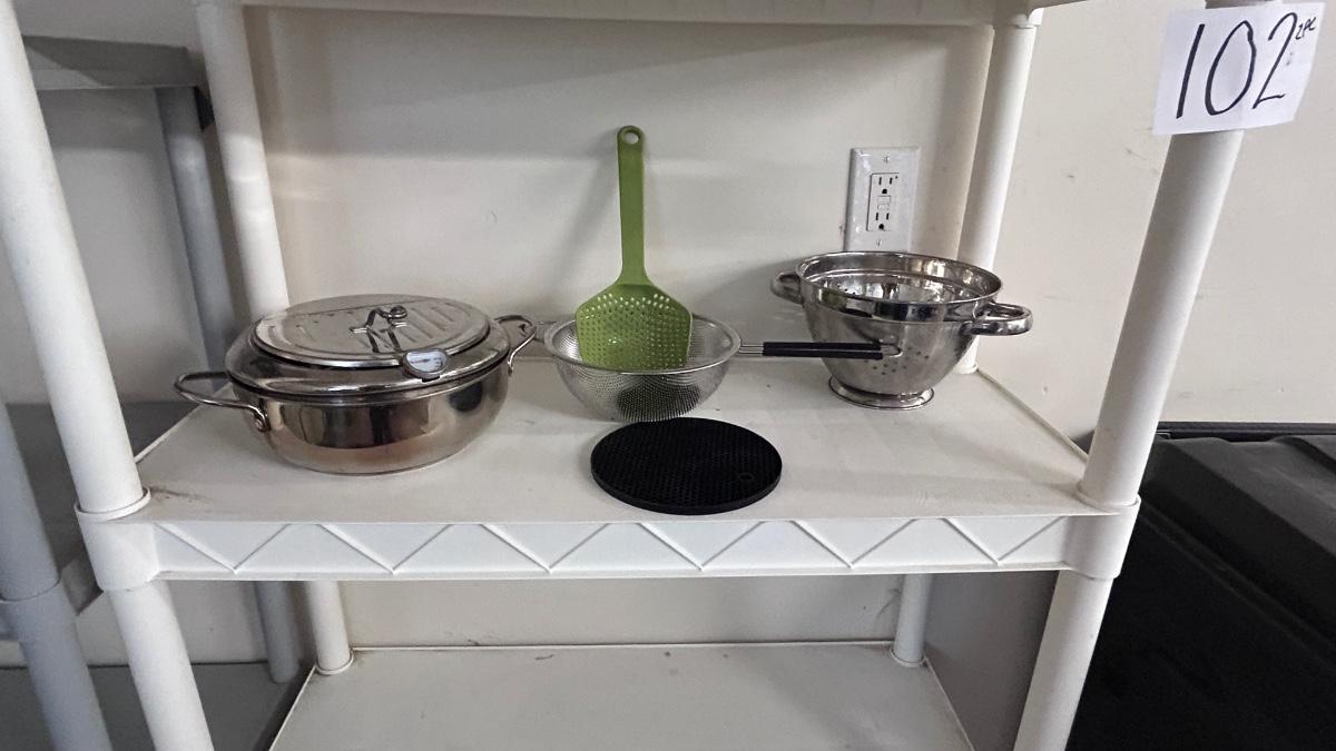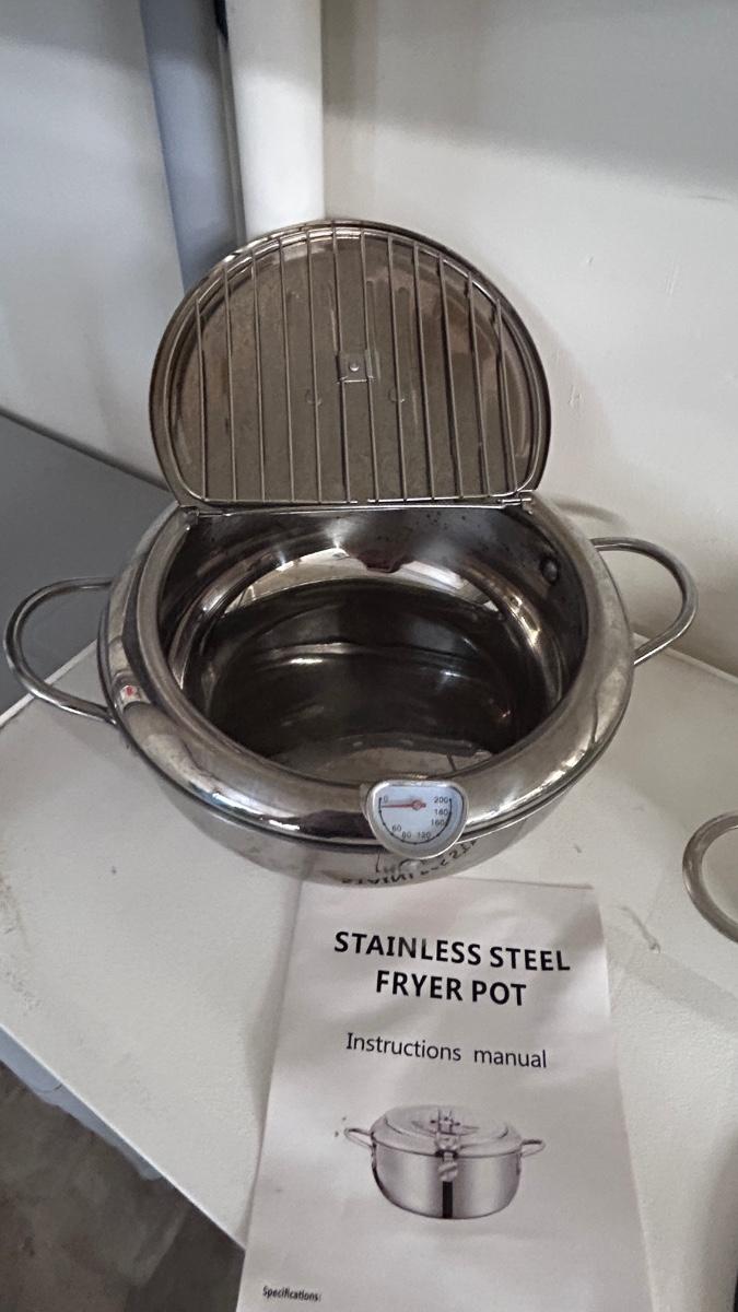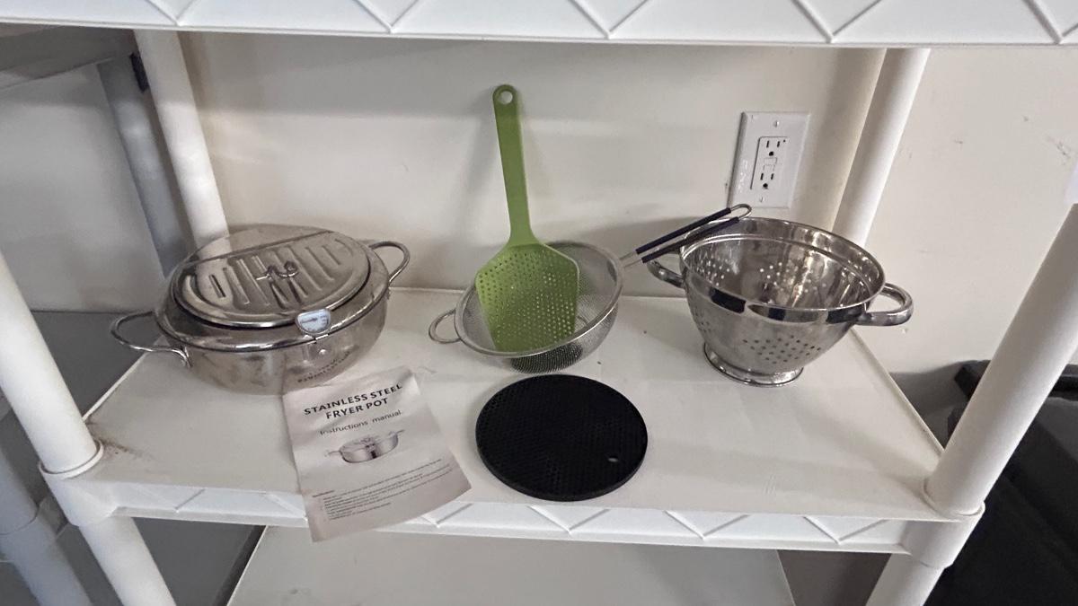 STAINLESS STEEL FRYER POT, COLANDERS, AND SILICONE HOT PLATE HOLDER