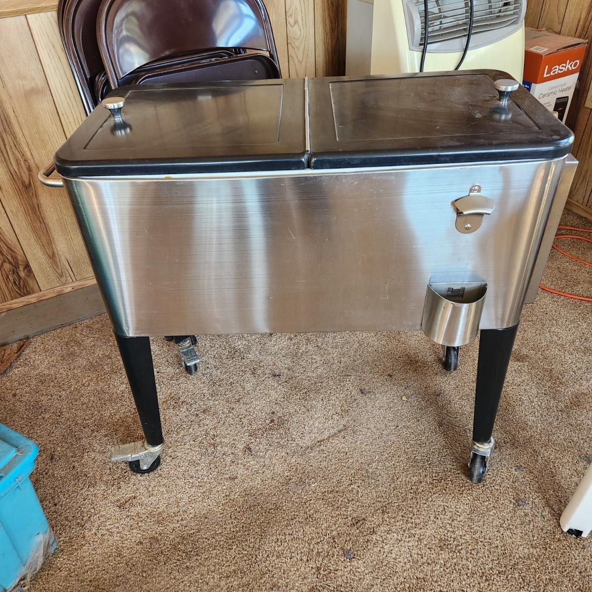 Stainless Steel Ice Chest Cooler on Casters with Bottle opener