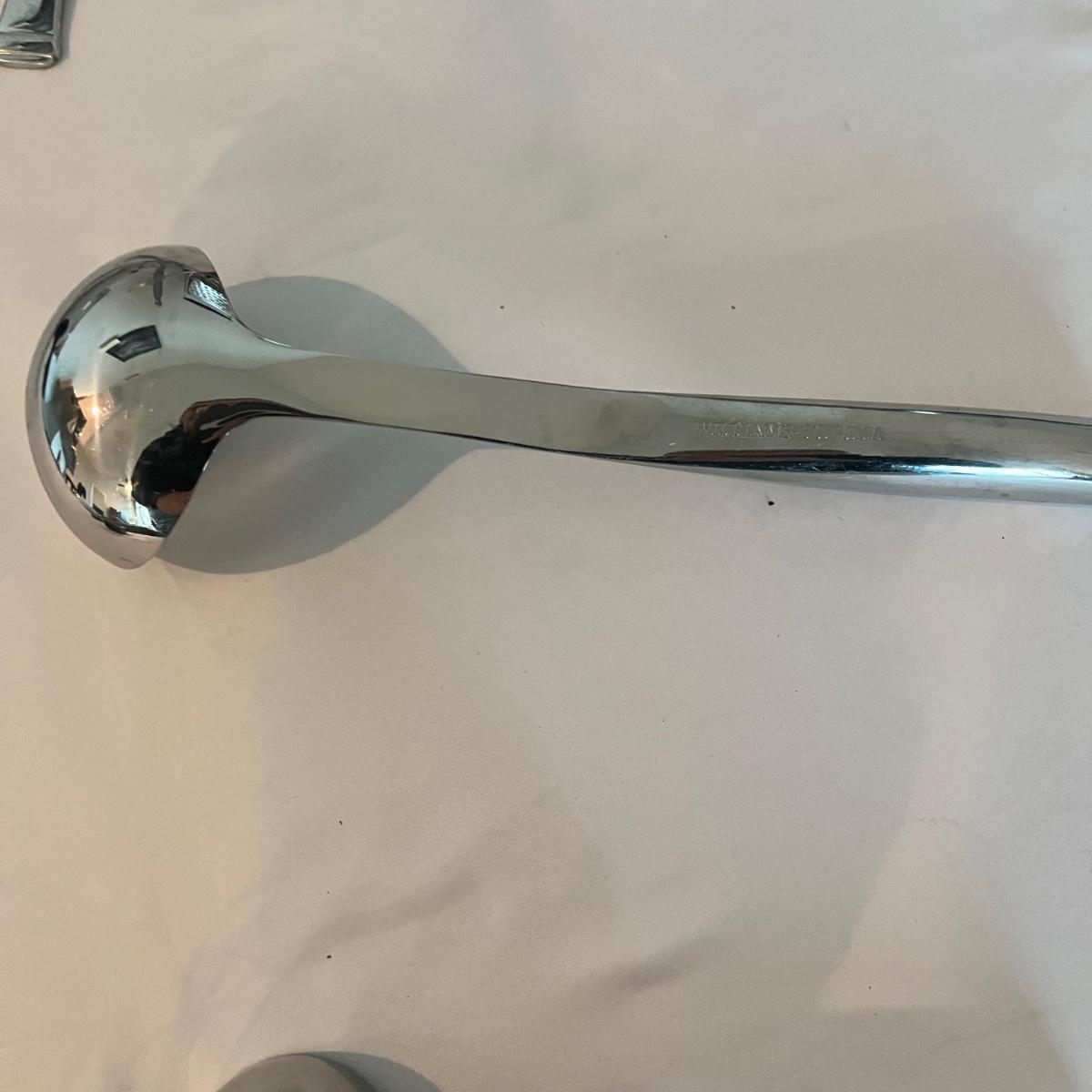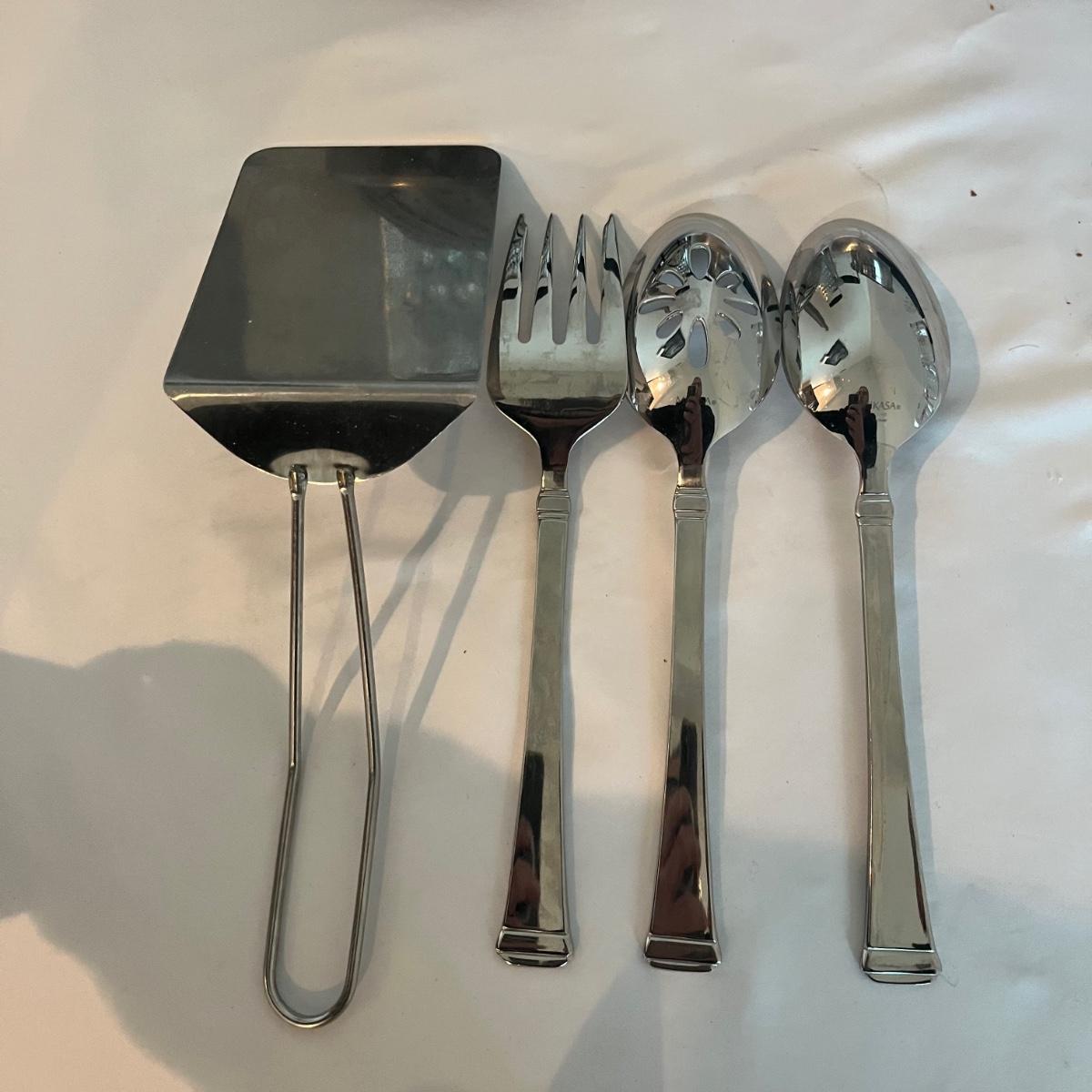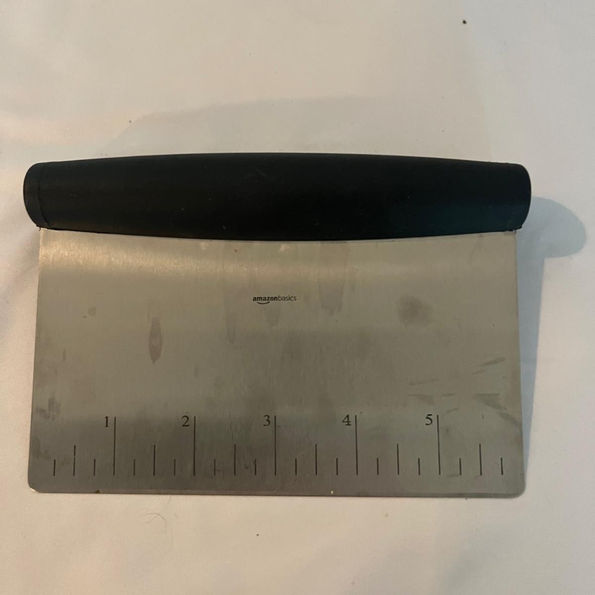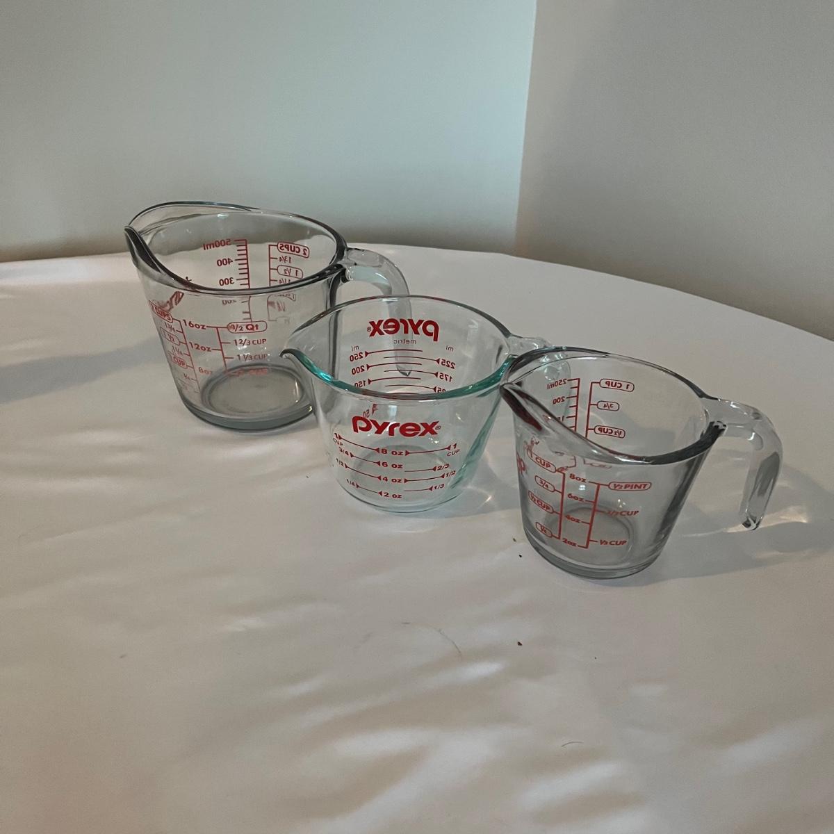Lot includes five piece stainless steel nesting bowls, grater, colander, rolling pin, steamer, Pyrex and Anchor glass measuring cups, paper towel holder, meat tenderizer and more.