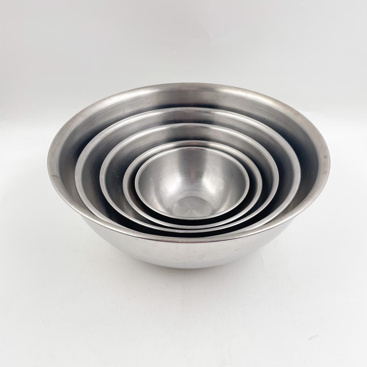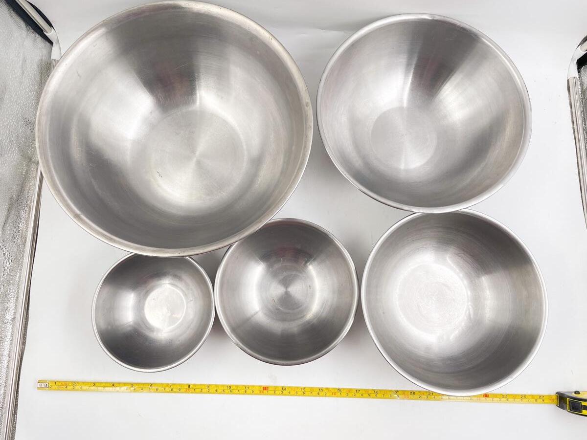 In good condition, show a few signs of wear but lots of life left! Smallest bowl is 6” in diameter, biggest bowl is 13”.