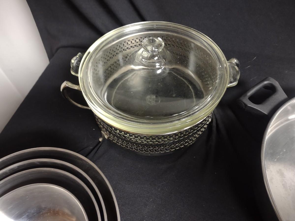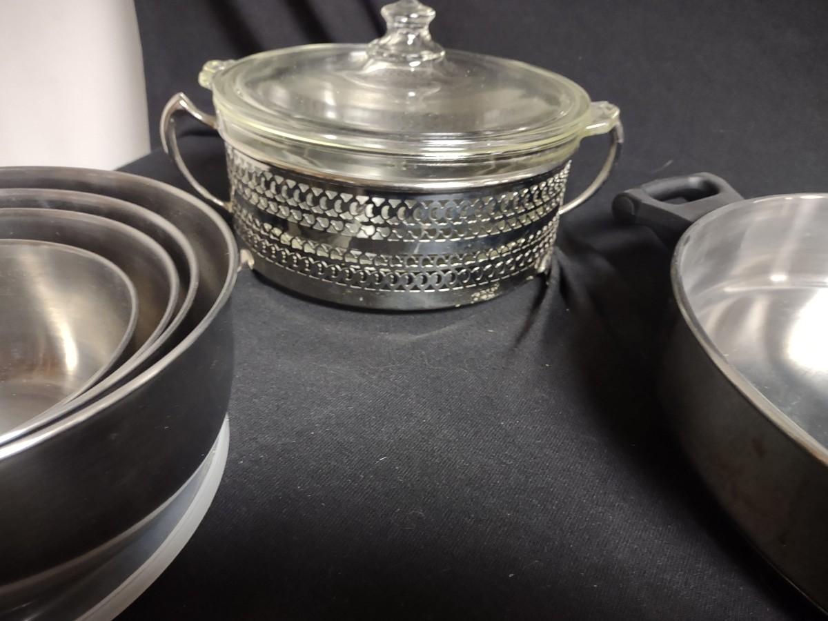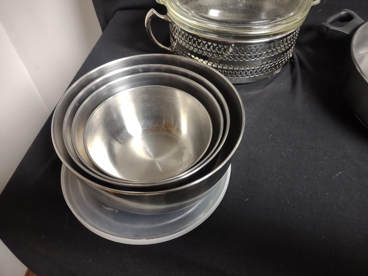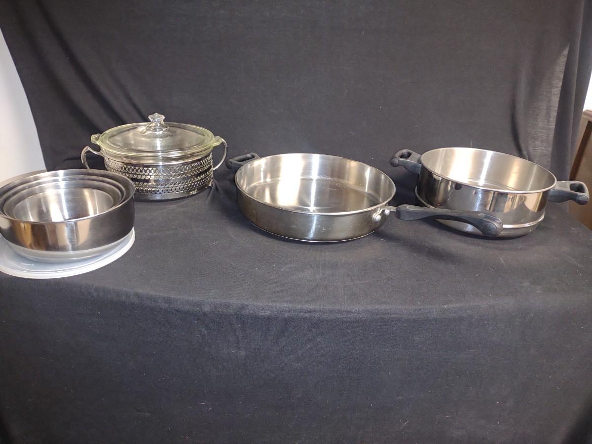 STAINLESS STEEL NESTING BOWLS, CASSEROLE DISH IN SERVER AND COOKWARE