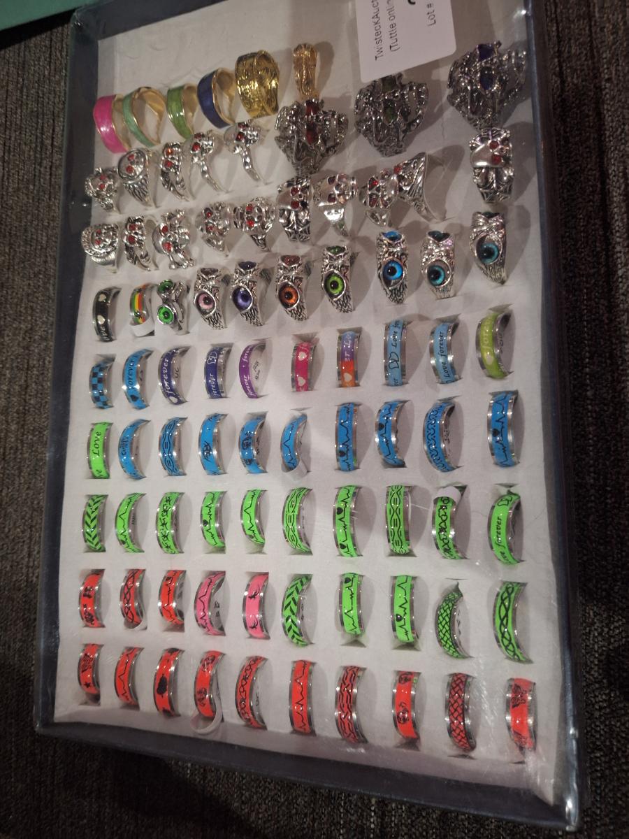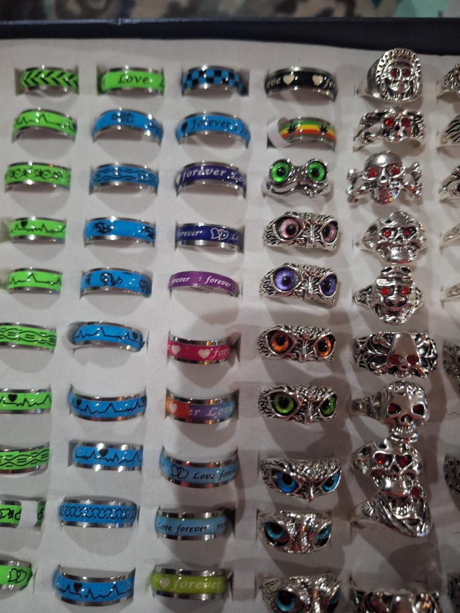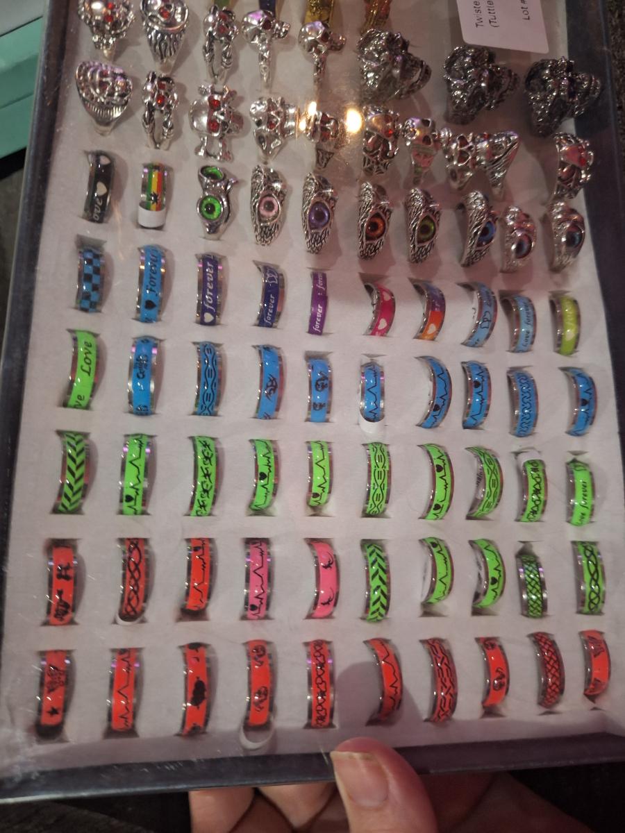 stainless steel or alloy rings and other rings in various sizes in a display tray