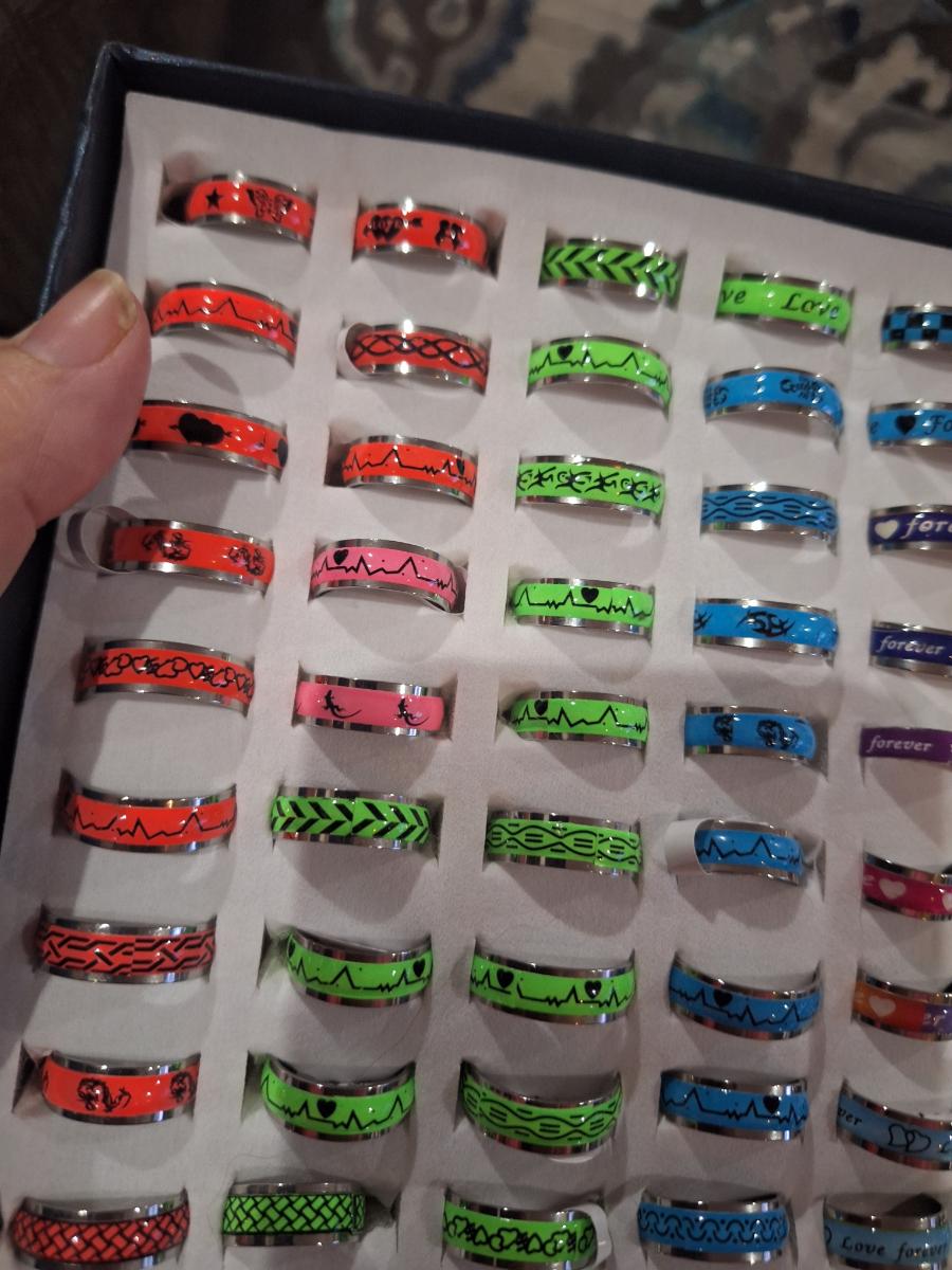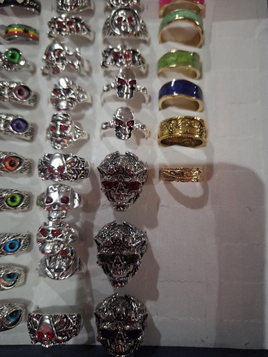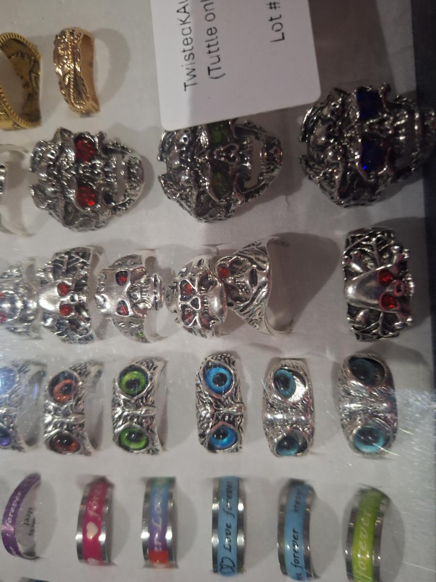 stainless steel or alloy rings and other rings in various sizes in a display tray