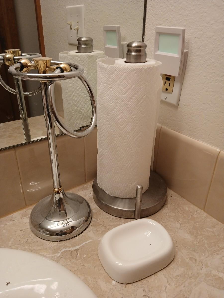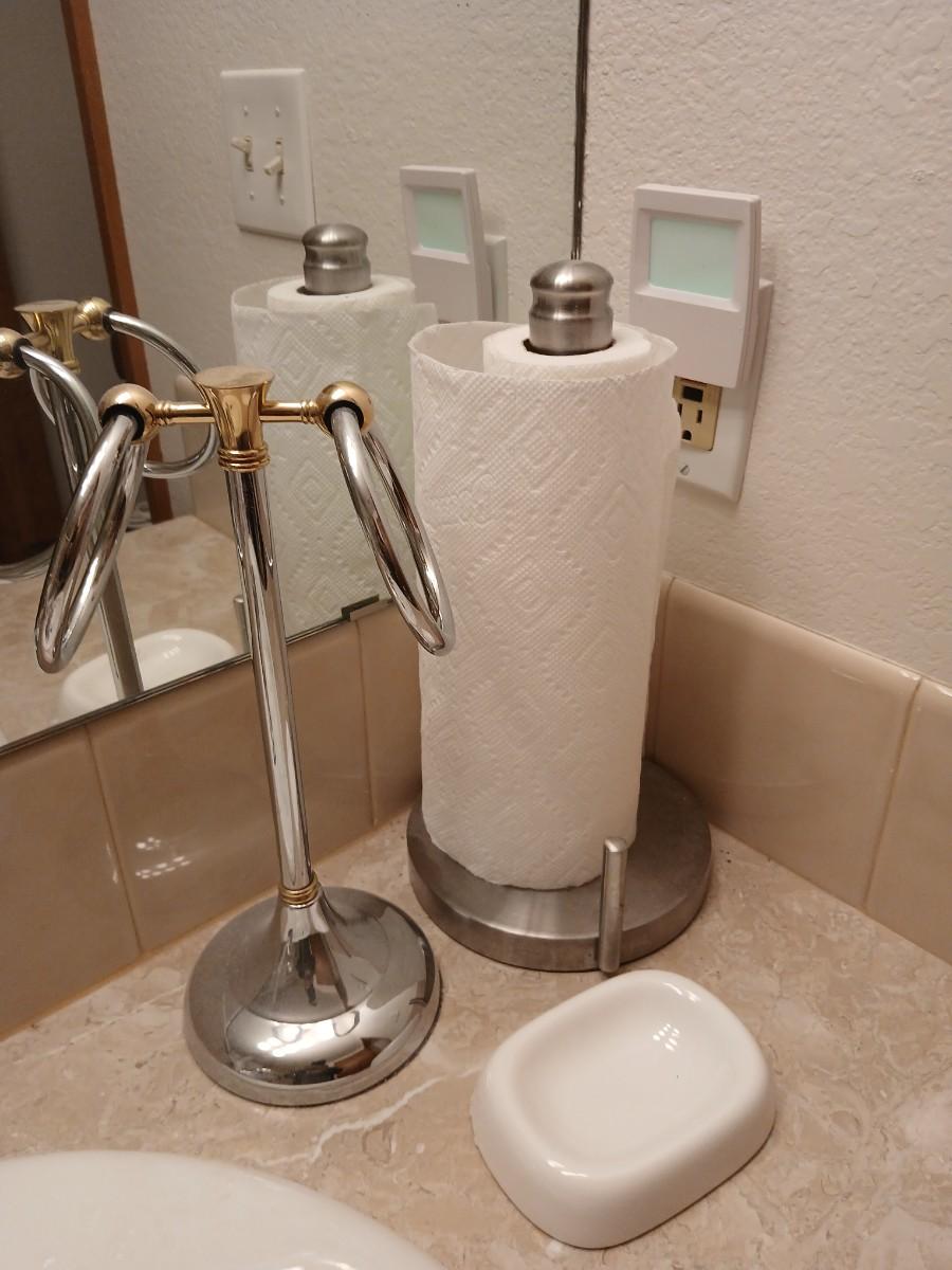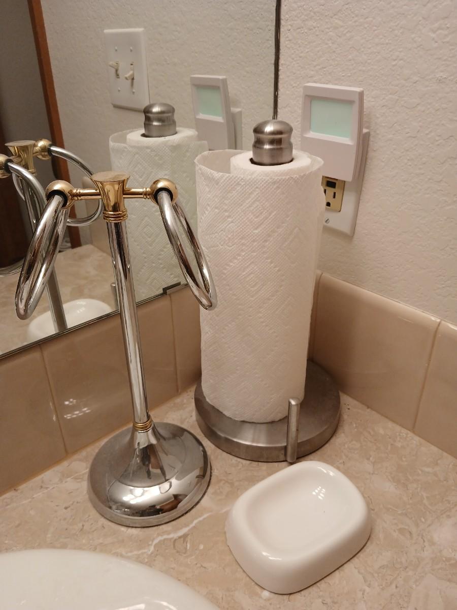 Stainless steel paper towel holder, hand towel holder and a soap dish and nightlight