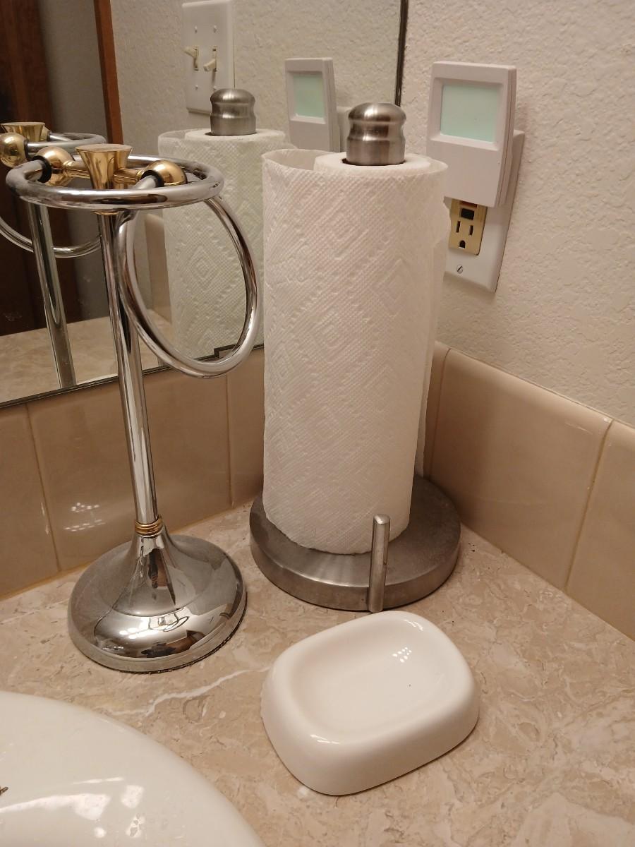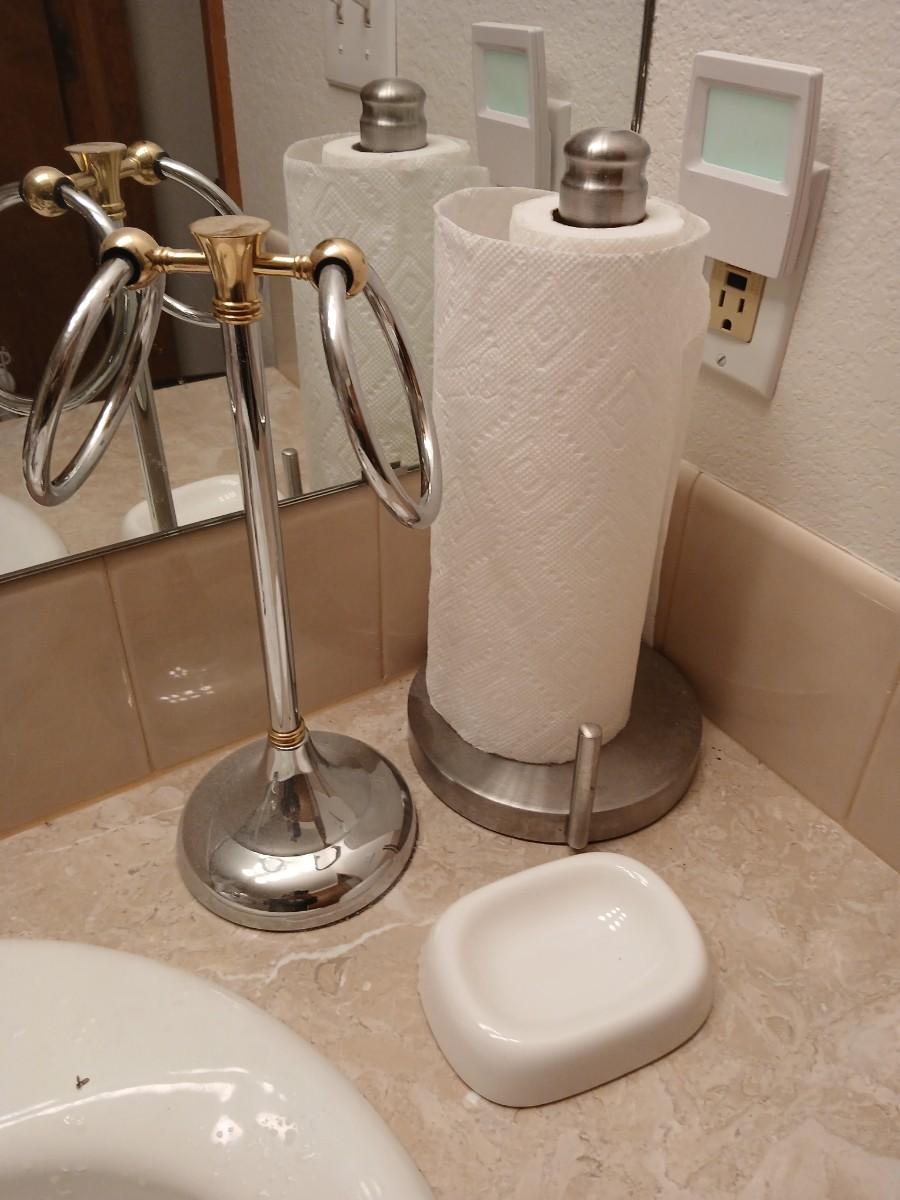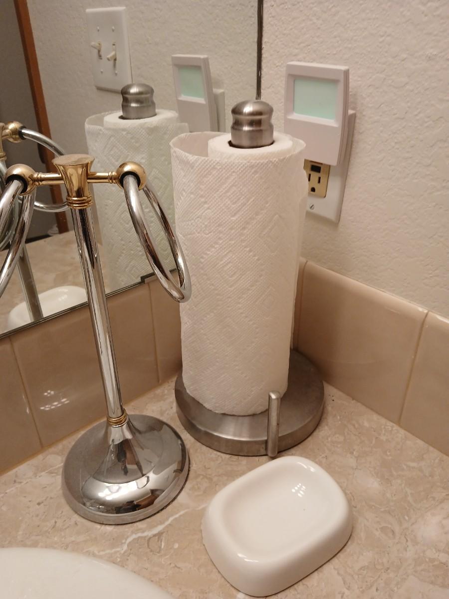 Stainless steel paper towel holder, hand towel holder and a soap dish and nightlight