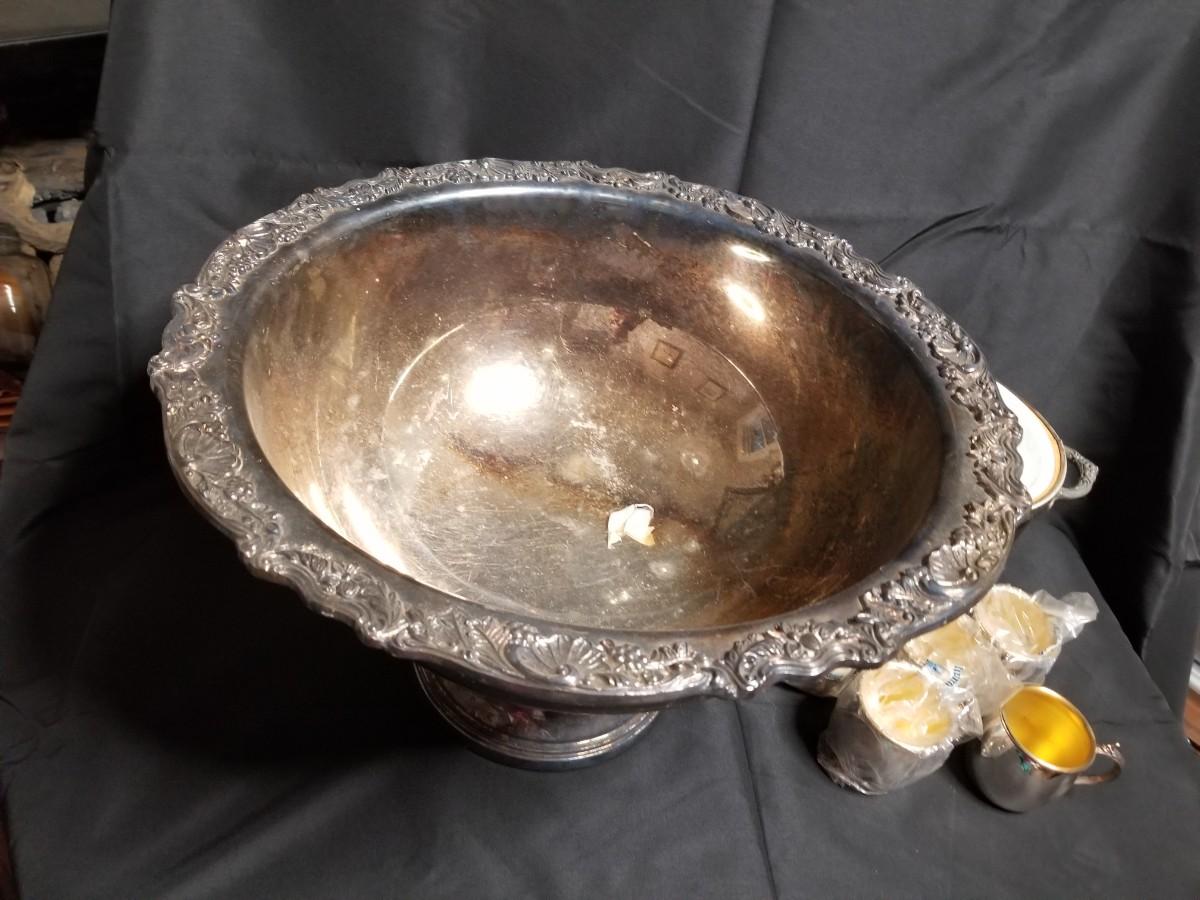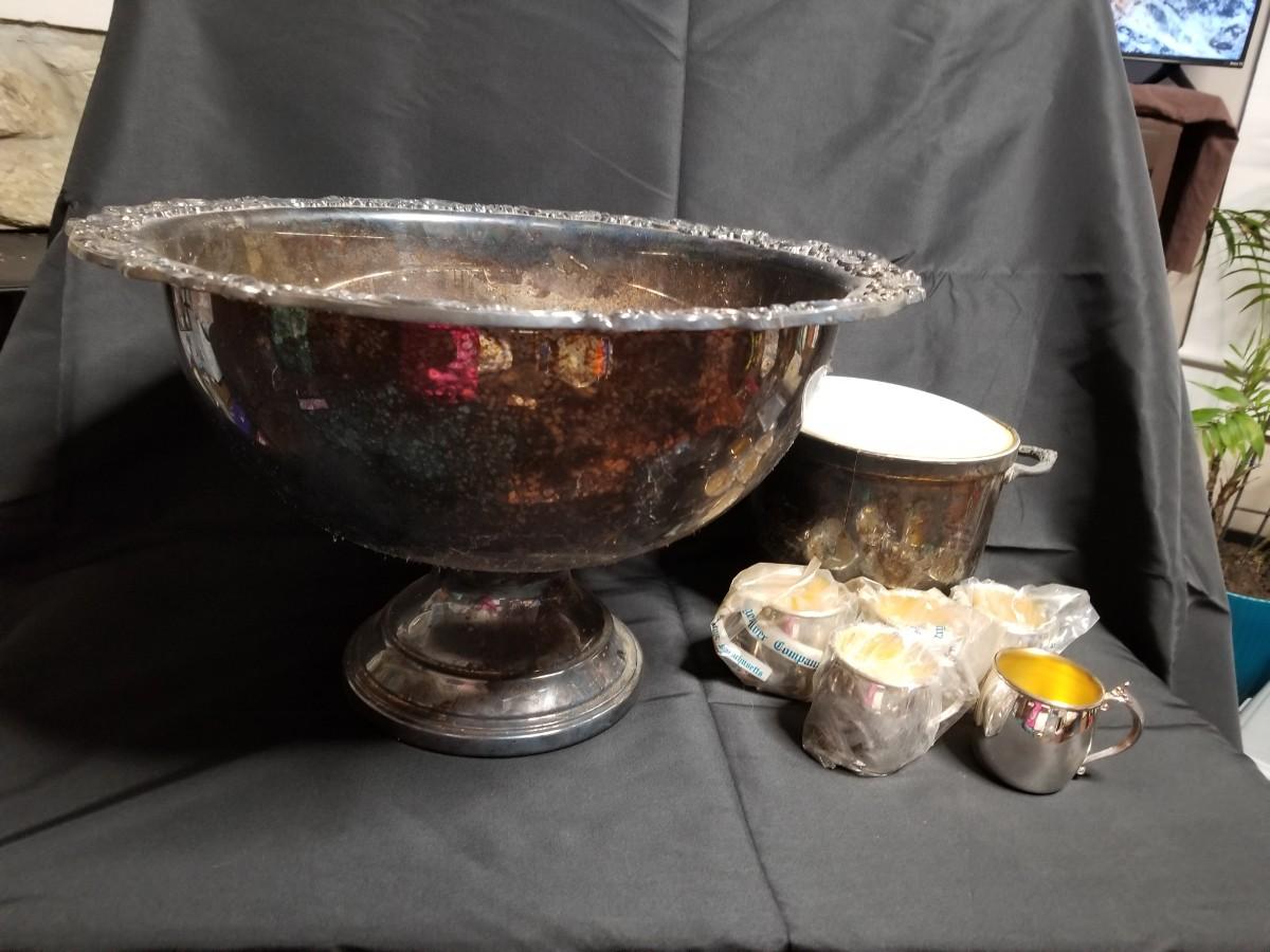 Stainless steel punch bowl, 5 cups, ice bucket and ladle