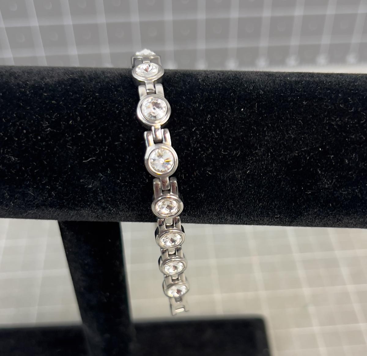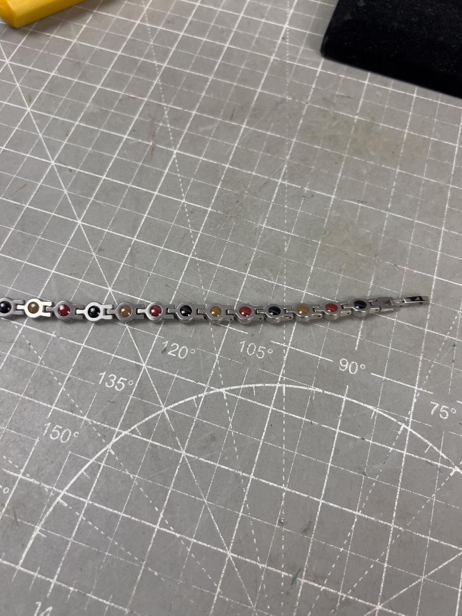 Interesting. Nice. Has Colored stone on one size and faux diamond on the other.