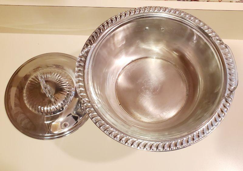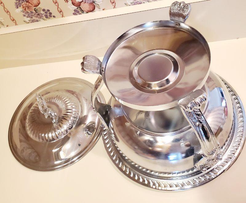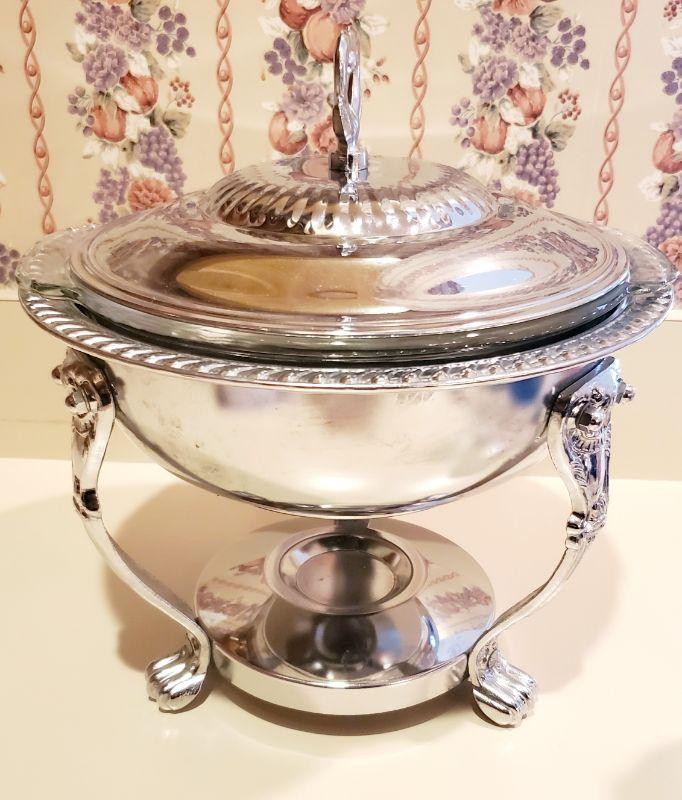 STAINLESS STEEL SERVING DISH W/ GLASS BOWL