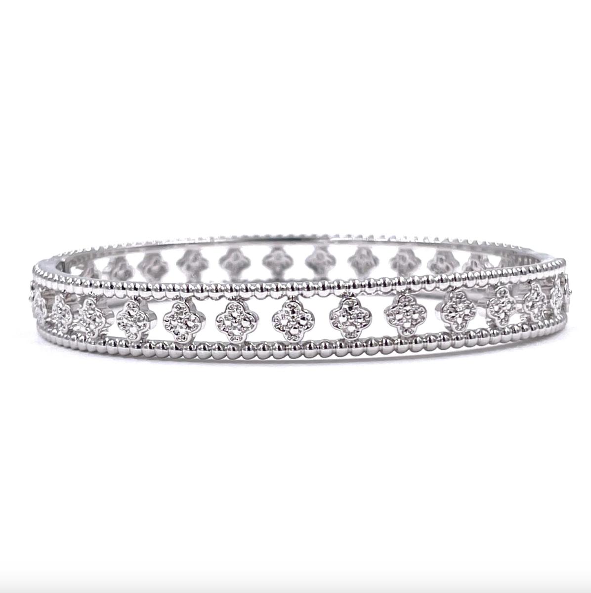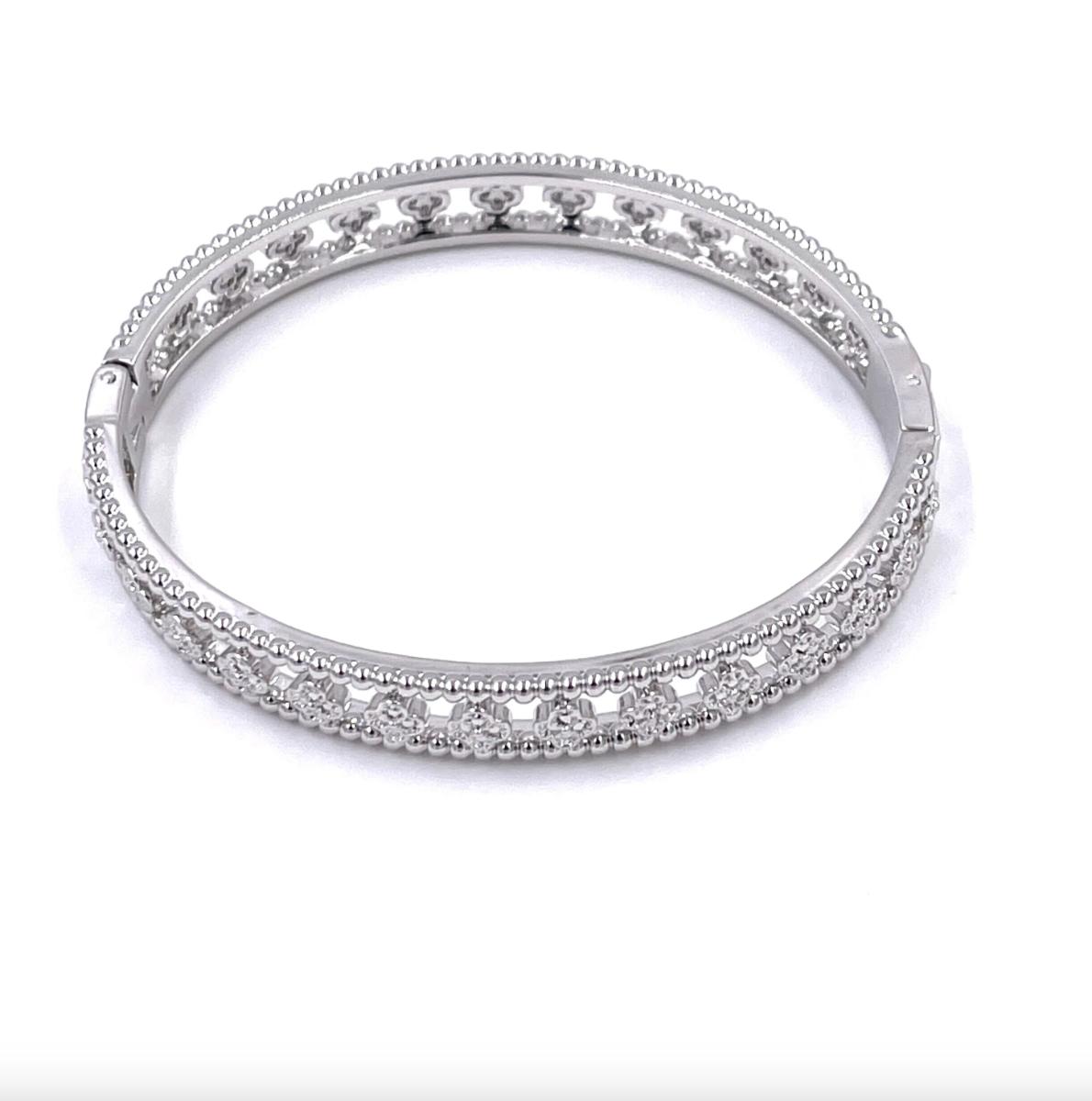 Stainless Steel Silver Cubic Zirconia Encrusted Stone Design Bangle Bracelet