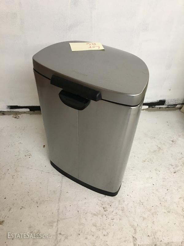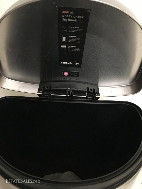 Good condition, fits a normal tall kitchen bag, plastic liner also lifts out. 27" tall, 17" x 13".
