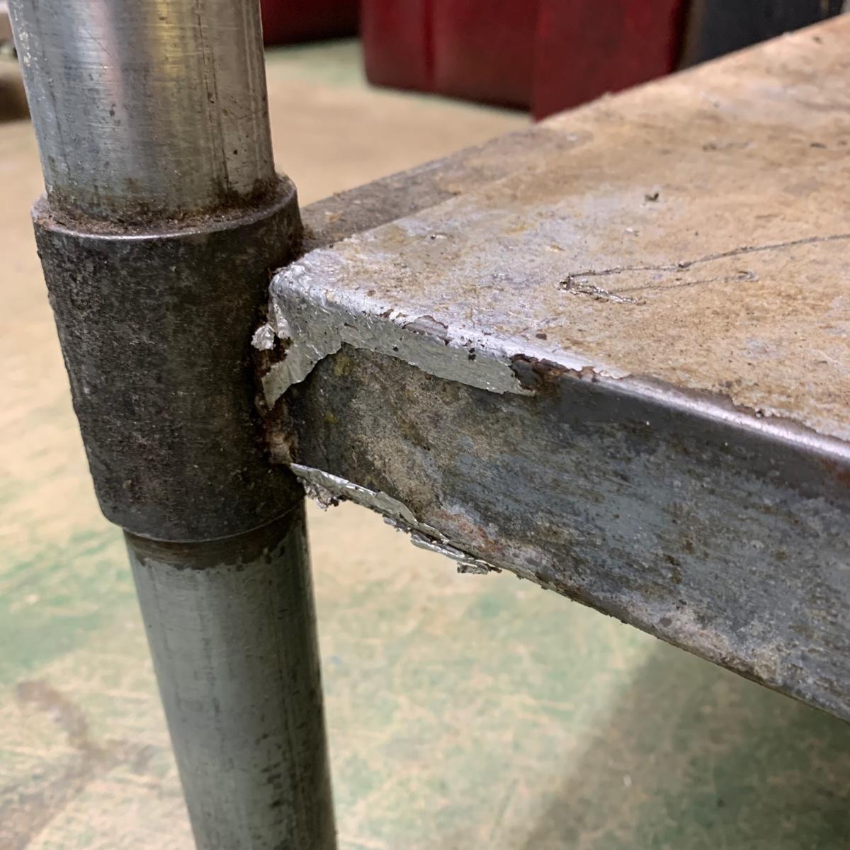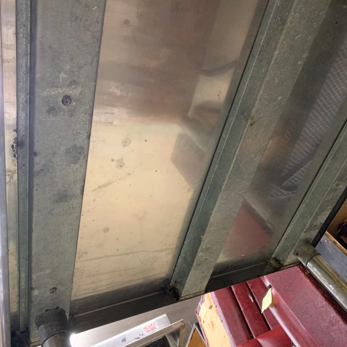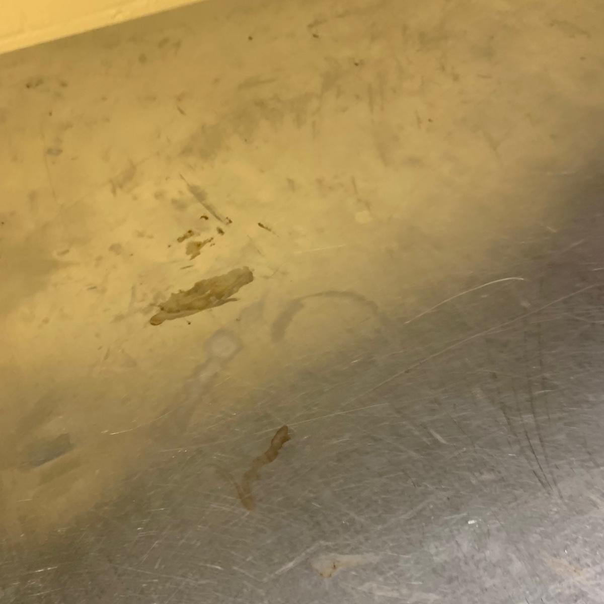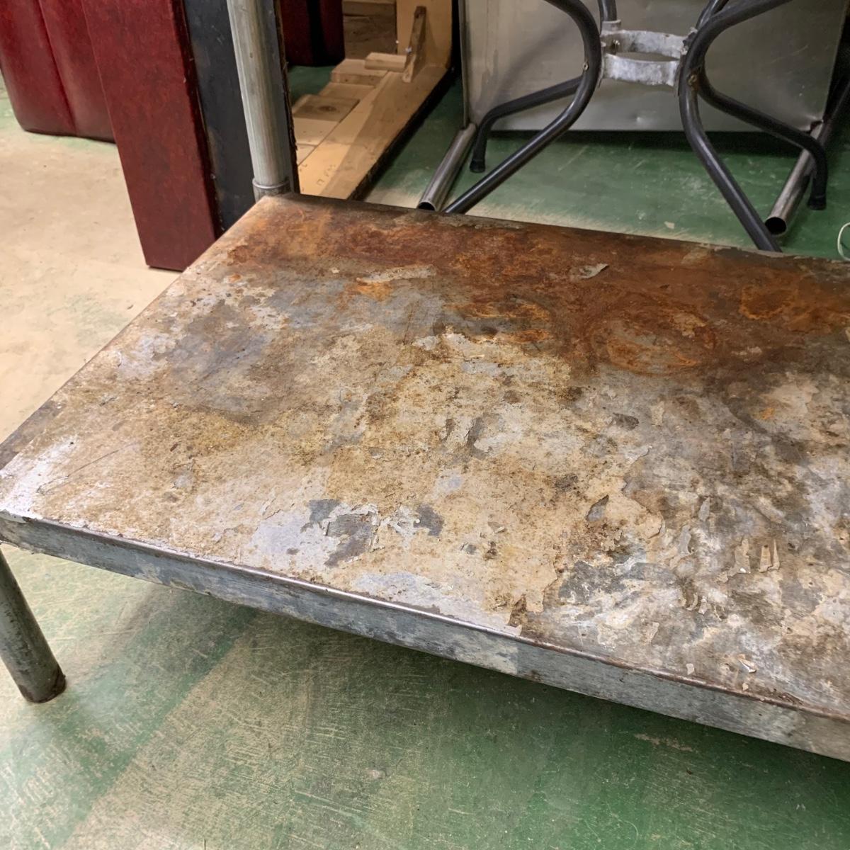 This stainless steel works top table measures 60” x 30” x 34.5”. According to the previous owner, the table has a 304 stainless top and a 430 stainless bottom. The top surface has some scratches and stains, most of which appear to be cleanable. The surface of the bottom shelf has quite a bit of peeling and rust. Structurally, the table is in very good solid condition. Local pickup only. There is easy access to load this item into your vehicle through a door in the room it is located in to the parking lot. It will not have to be moved up or down any stairs. The winning bidder will need to bring help to load this item.
