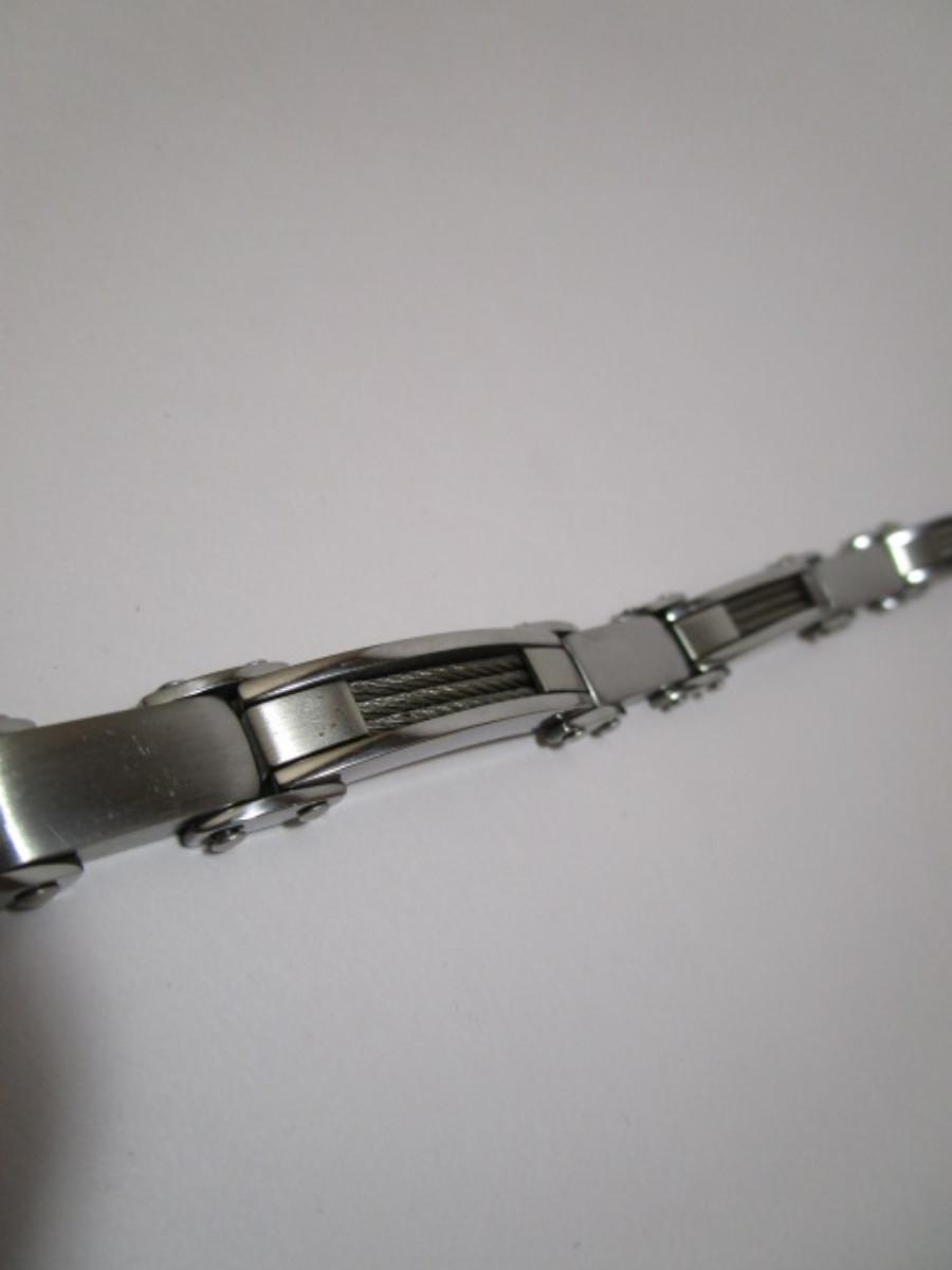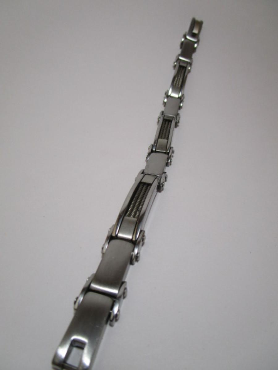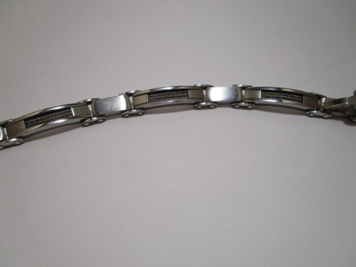 Stainless steel/carbon fiber 9" bracelet, silver