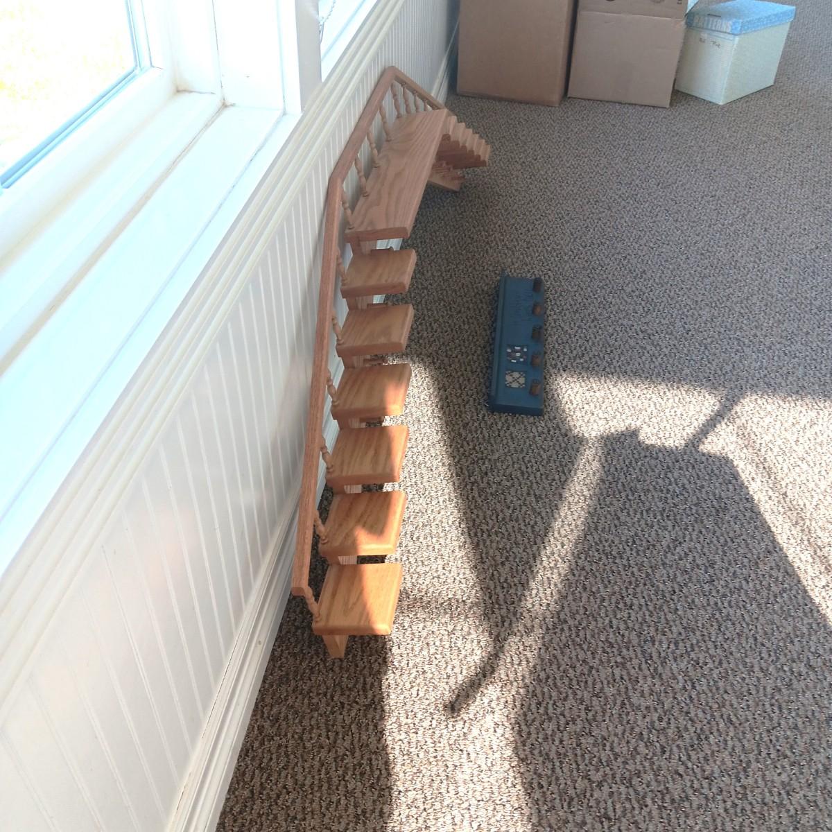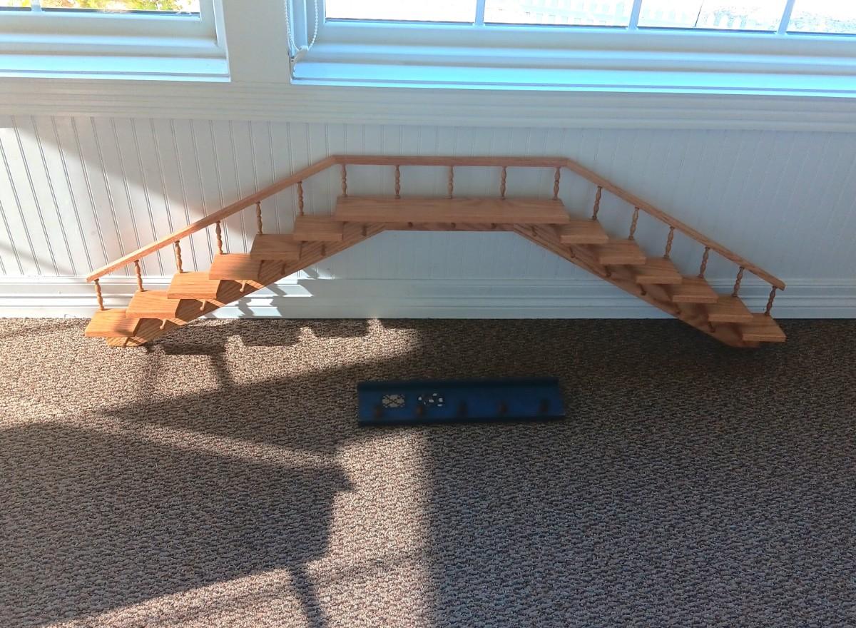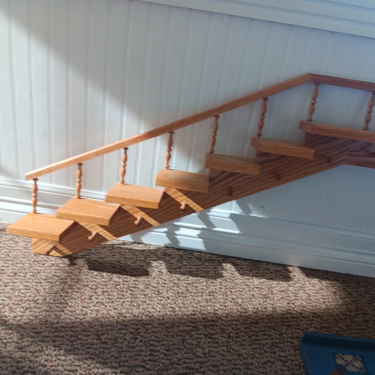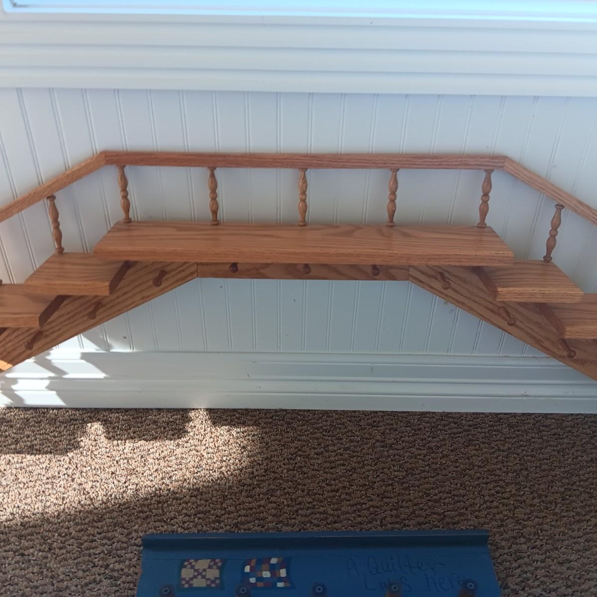 STAIR STEP WALL HUNG DISPLAY SHELF AND A COAT RACK