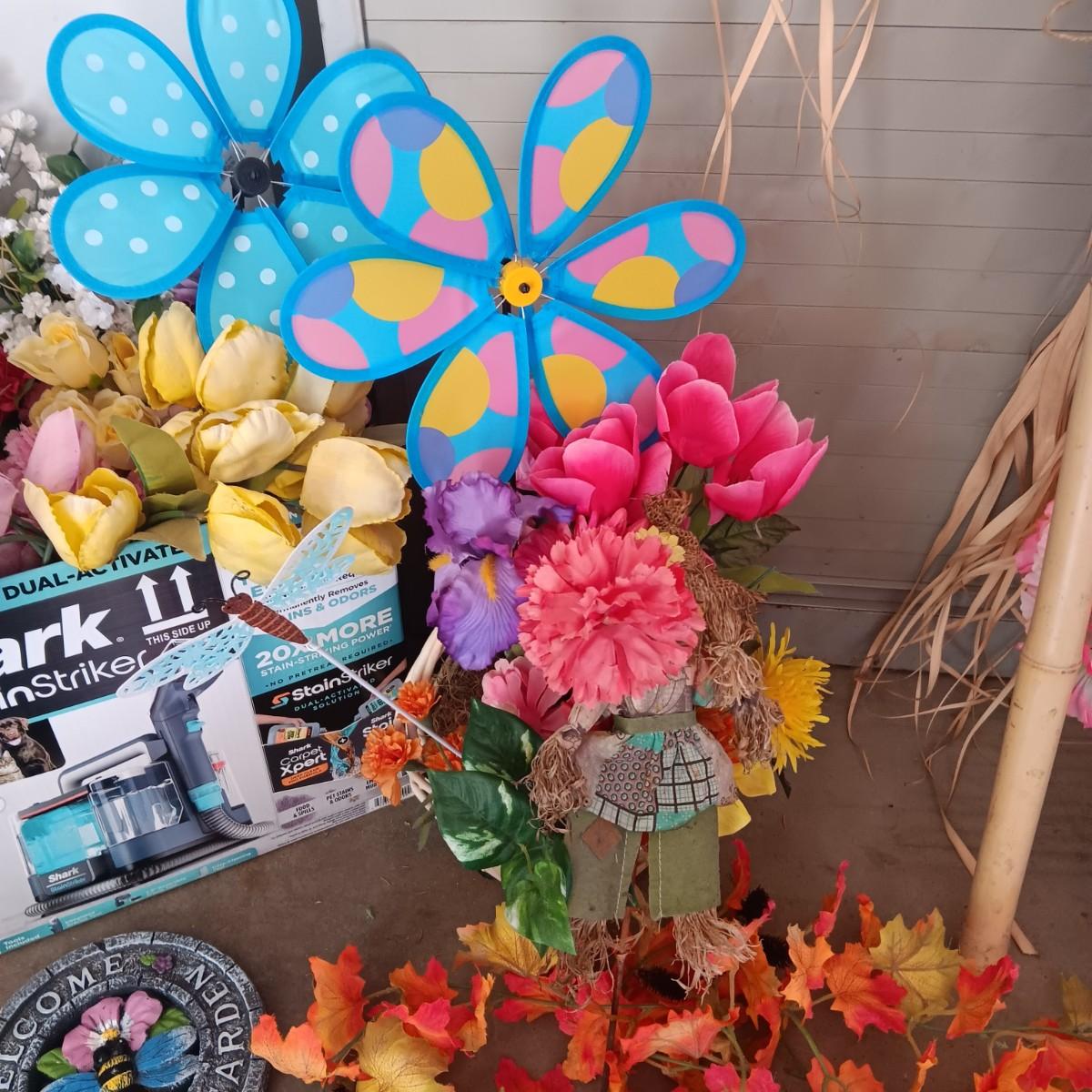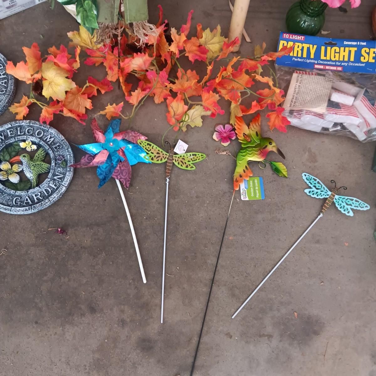 STAKED YARD ART, FAUX FLOWERS, STEPPING STONES AND MORE