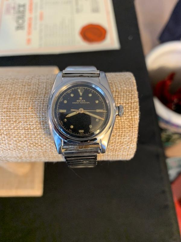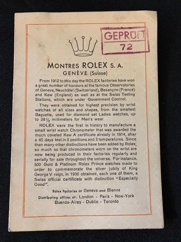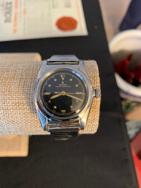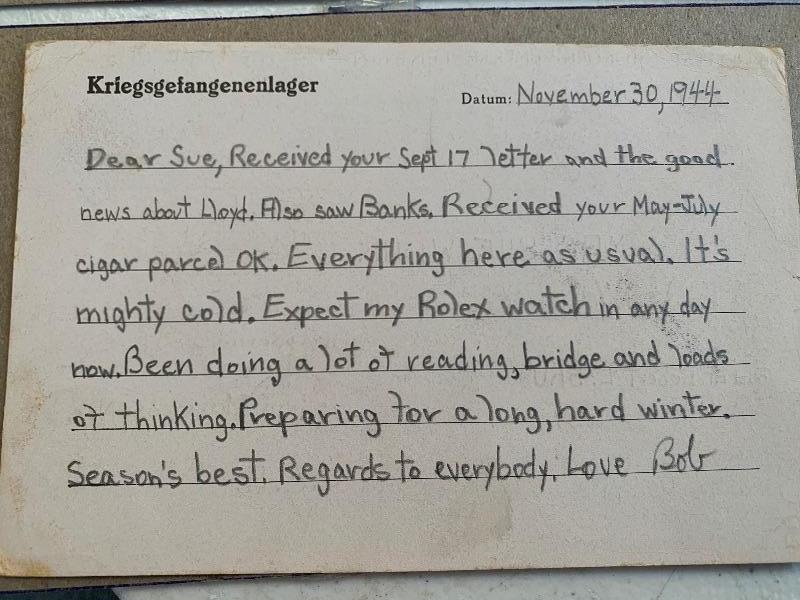 A 1944 Rolex Oyster wristwatch belonging to a Stalag Luft III POW. Hans Wilsdorf, founder of the Rolex watch company, came up with a sales tactic during World War II. He allowed POWs to purchase his watches on credit receiving payment from family members.