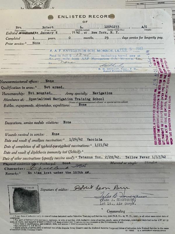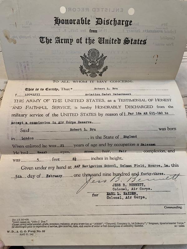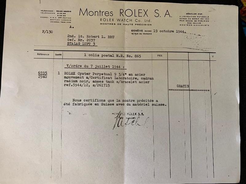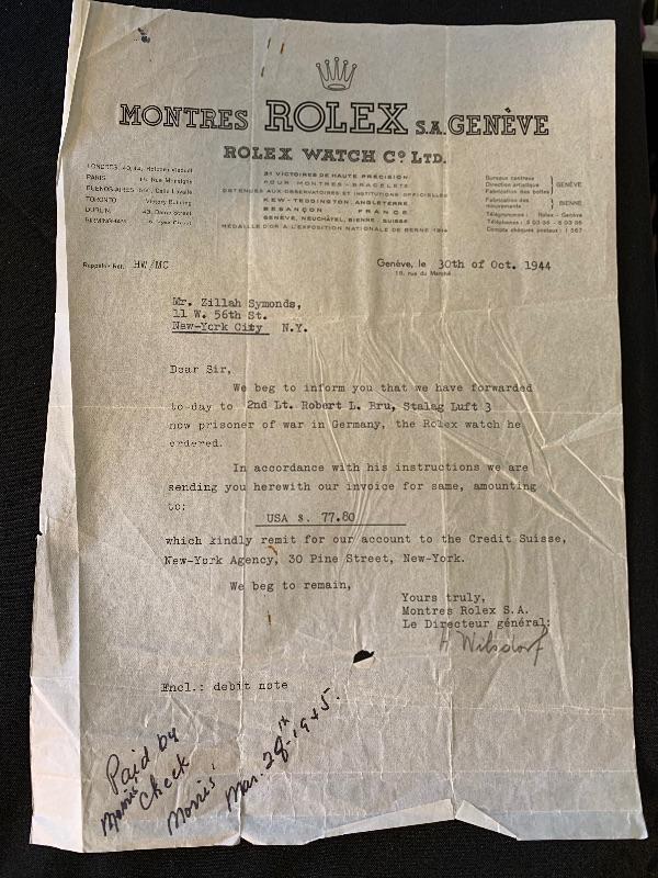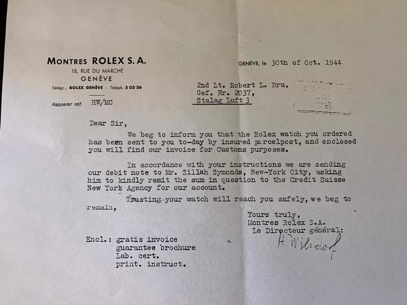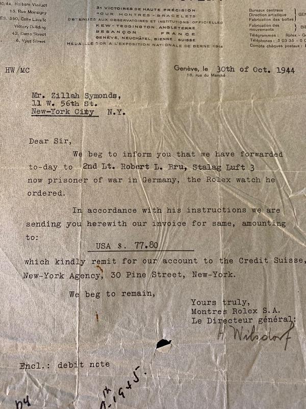 The owner of the watch was 2nd Lt. Robert L. Bru, his aircraft, a Boston III (Z2194), was shot down near Dunkirk following a bombing raid on a power plant in northern France. From there he found his way to Stalag Luft III. The same place where a 220 men took part in an actual escape on March 24th, 1944, which became known as The Great Escape.