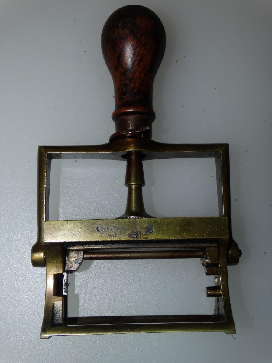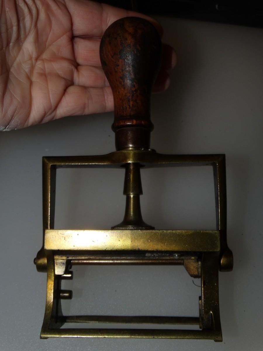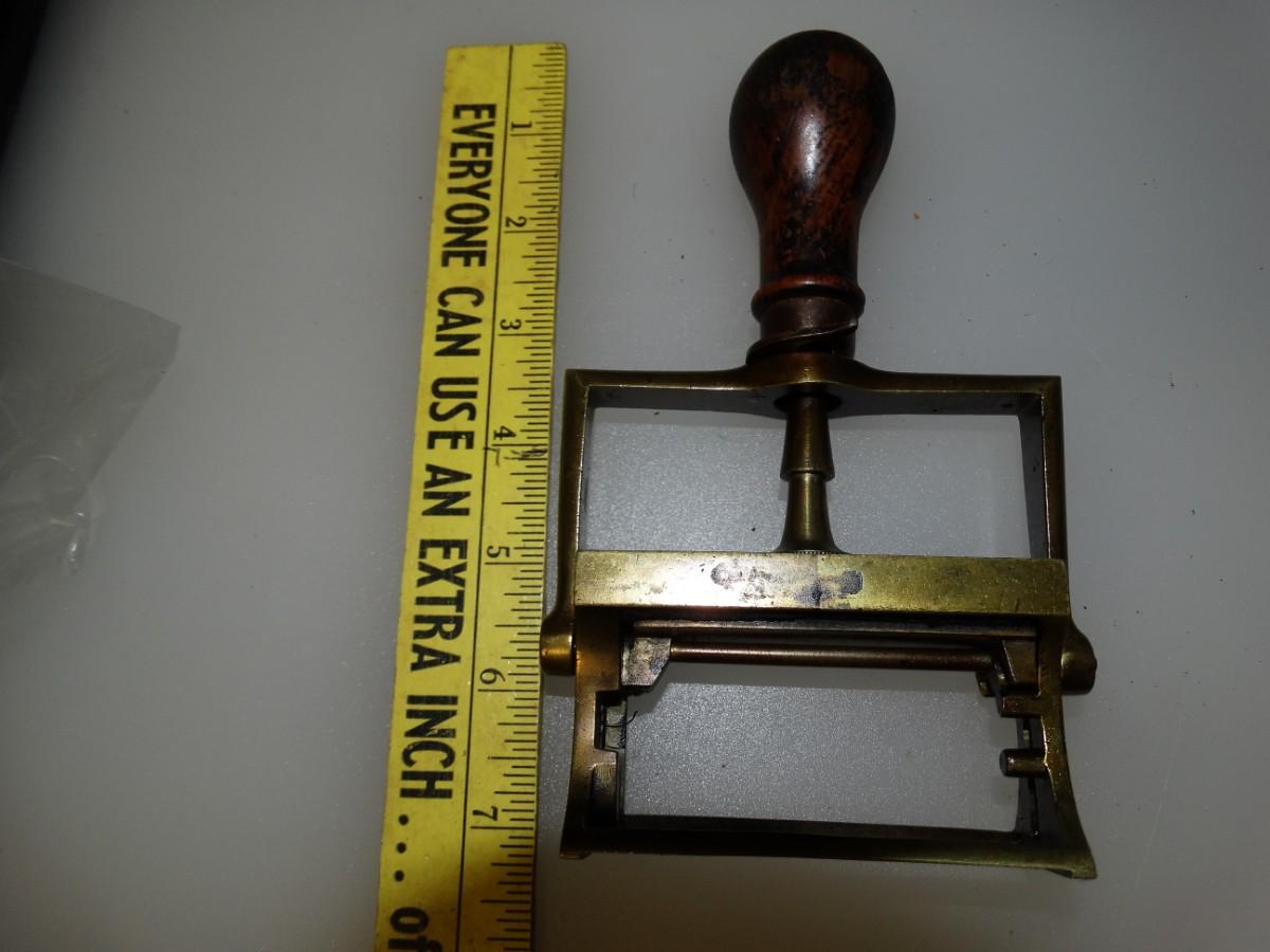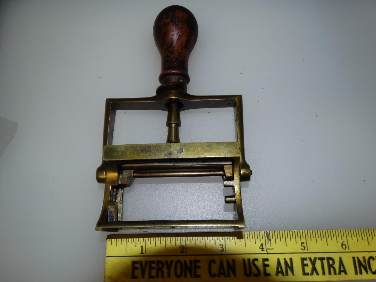Victorian Era Office Stamp Brass with Wood Handle from England vintage office equipment Retro 1800's Industrial antique Traditional Mechanical Stamp - can still be used with INK Pad today! Works Great