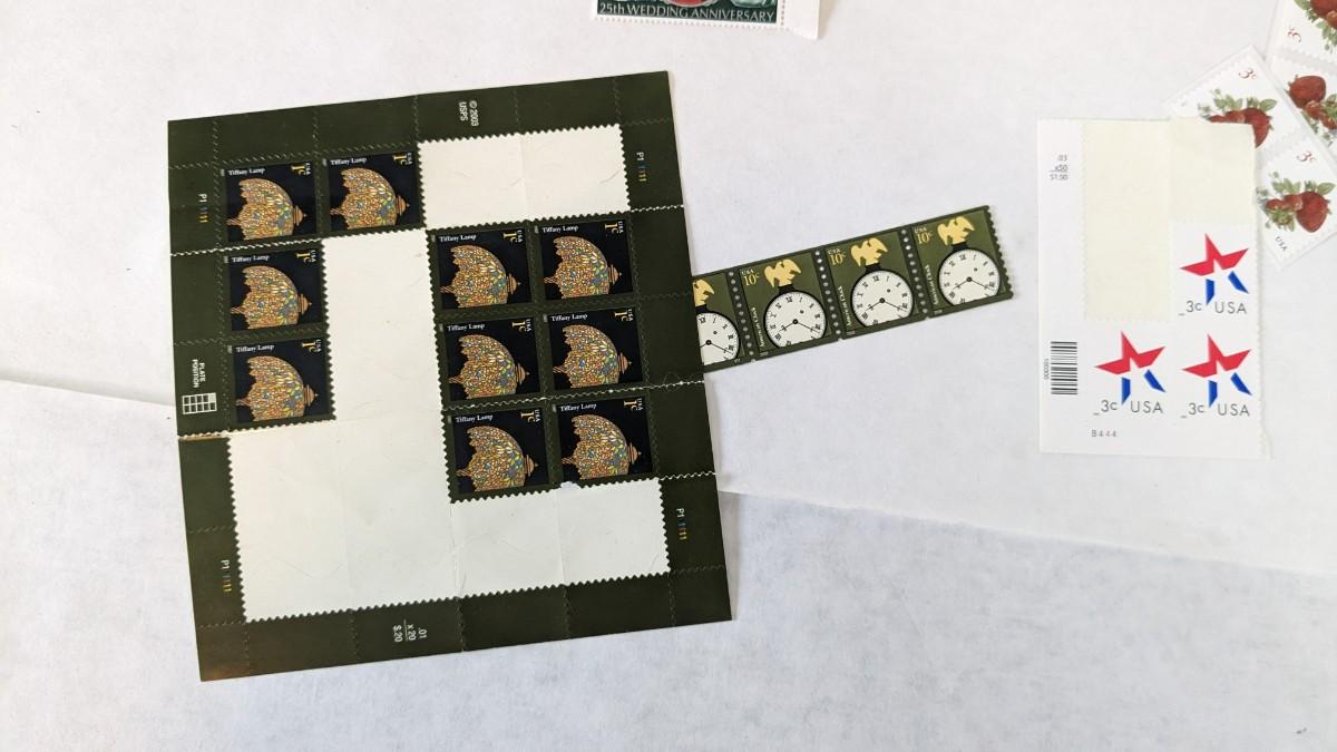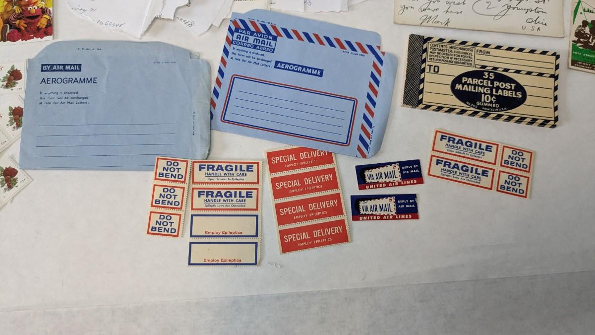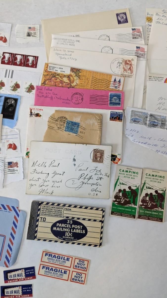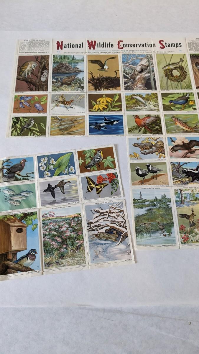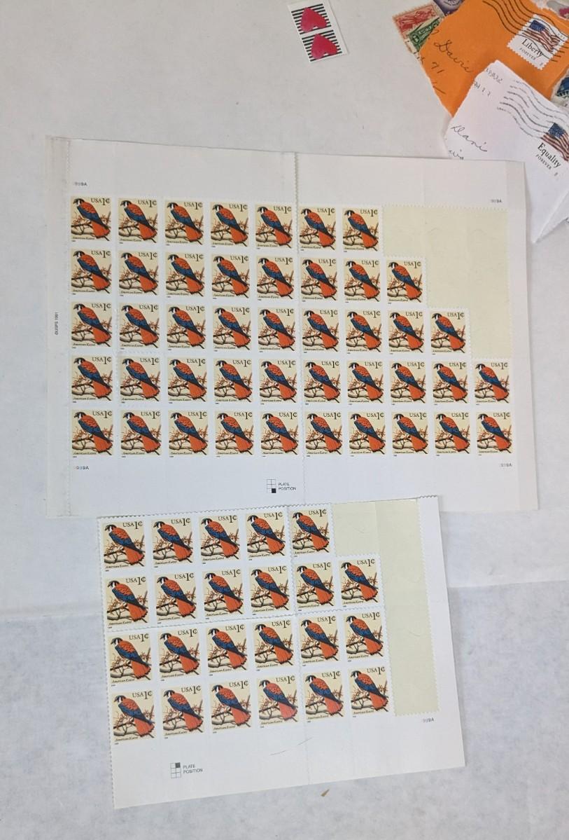 a super array of used, unused, and collectible stamps. Includes full sheets of Maya Angelou, Sarah Vaughn, Sesame Street, and Nebraska Statehood. Partials of postcard stamps. Various used corners and a great little collection of Conservation stamps with 2 posters. Note wear in photos to these pieces, overwhelmingly intact and perfect for framing.