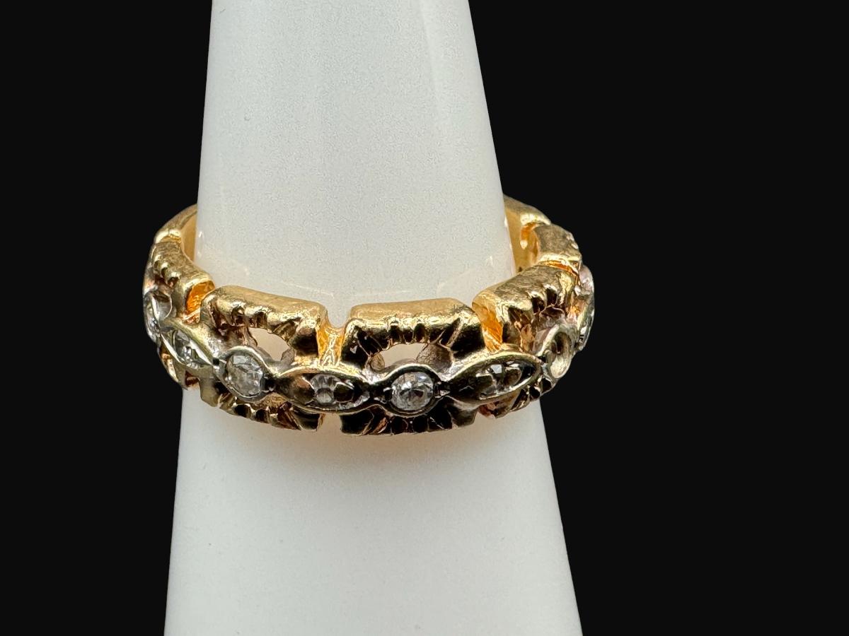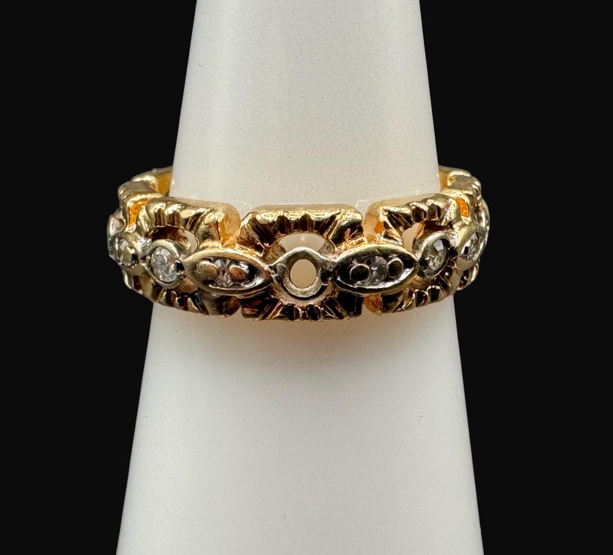 **WIRE TRANSFER IS REQUIRED IF SHIPPED.** [5.72g] This piece features 12 brilliant cut diamonds set in both white and yellow gold. The main/primary stone is missing, leaving a total of 12 diamonds. Believed to be custom made. Ring size is 7. **ALL PRECIOUS METALS SALES ARE FINAL. NO REFUNDS WILL BE GIVEN FOR ANY REASON.** [KB]