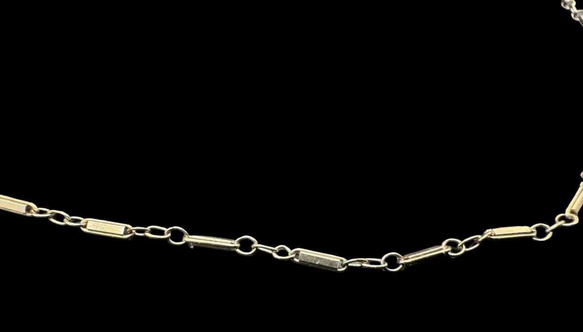 [2.46g] This is a bar and link chain, in white gold. It appears to be free of defects. Measurement: 17”L. [JP]
