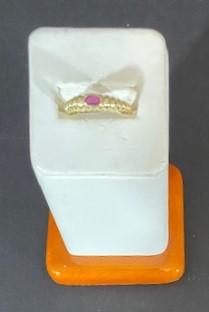 With ruby colored solitaire stone.