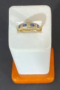 With four sapphire colored stones.