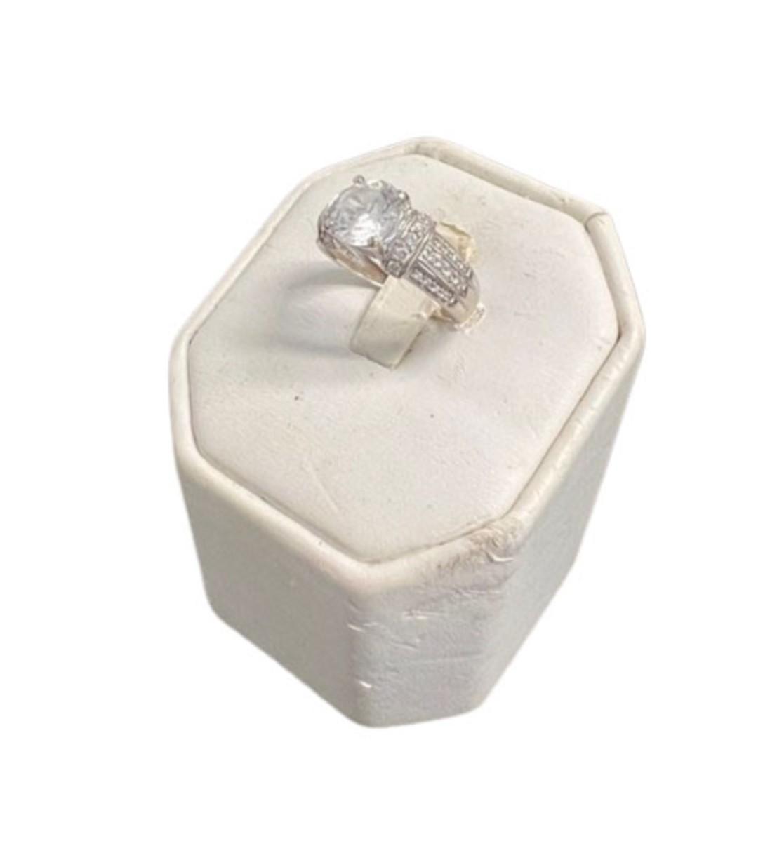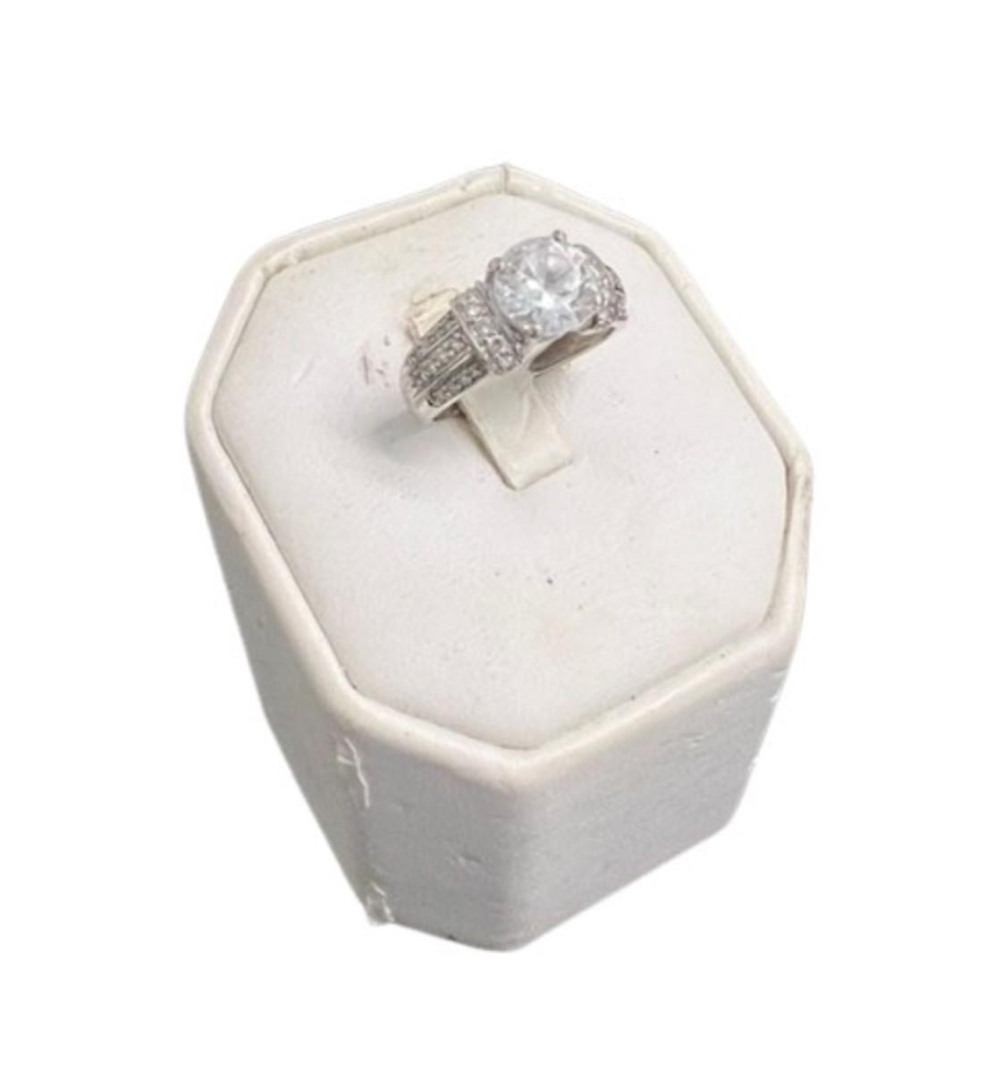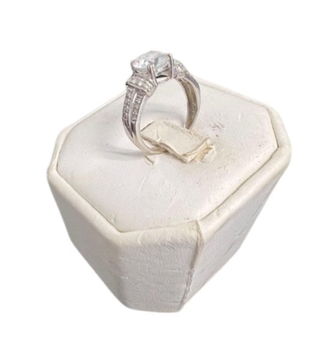 **WIRE TRANSFER IS REQUIRED IF SHIPPED.** [3.86g] With clear stones. Solitaire surrounded by smaller stones. Size 7. [SD]